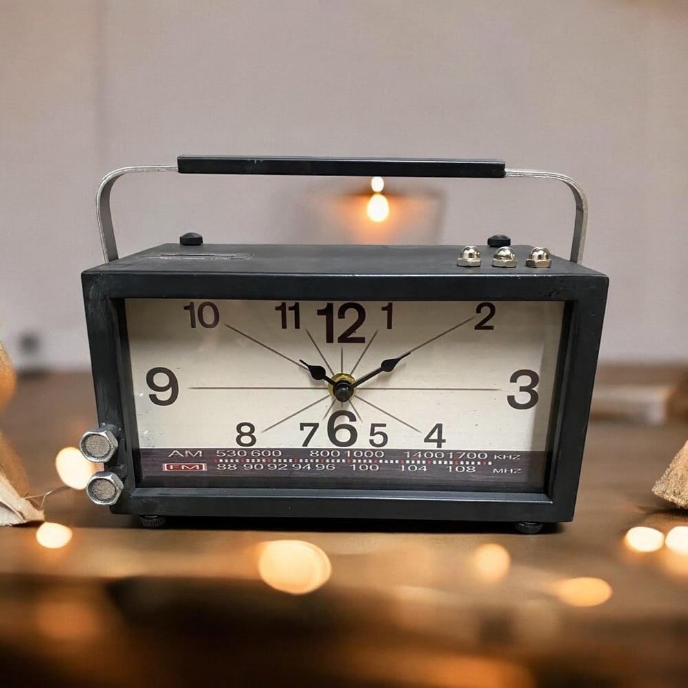 Sit back and enjoy the passage of time with this charming 20cm table clock, complete with a handy handle. This clock boasts an attractive design that blends seamlessly into any decor, offering both functionality and style. It's hand-finished, ensuring each piece is unique, and operates on a single AA battery, making it easy to maintain.