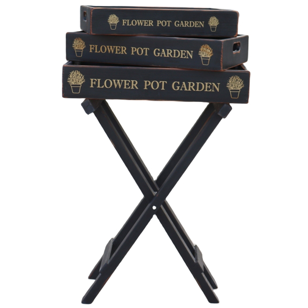 Acacia Home Black Wooden Garden Toffee Tray Set 3