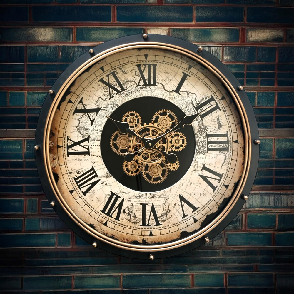 Watch the hours tick in style with this 60cm Gear Clock Wall, where functionality meets visual appeal. Hand-finished with an attractive design, this clock features visible gears that add a touch of industrial charm to any room. It operates on a single AA battery, making it both efficient and easy to maintain.