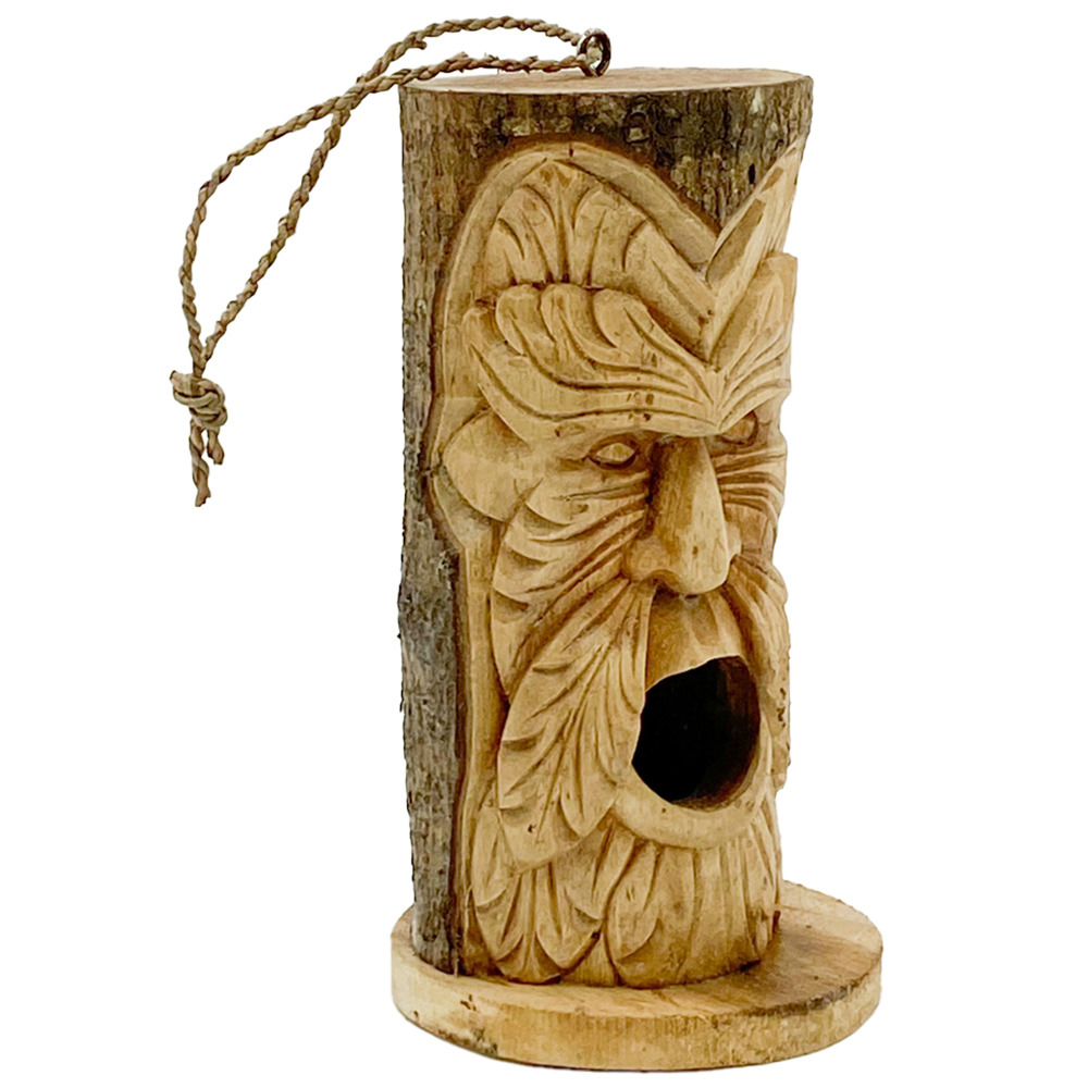 Bring character to your garden with the 30cm Hand carved Birdhouse Face, a unique piece meticulously crafted from tree trunks. This decorative birdhouse not only serves as a charming sanctuary for your feathered friends but also enhances your outdoor decor with its distinctive carved face and attractive design.