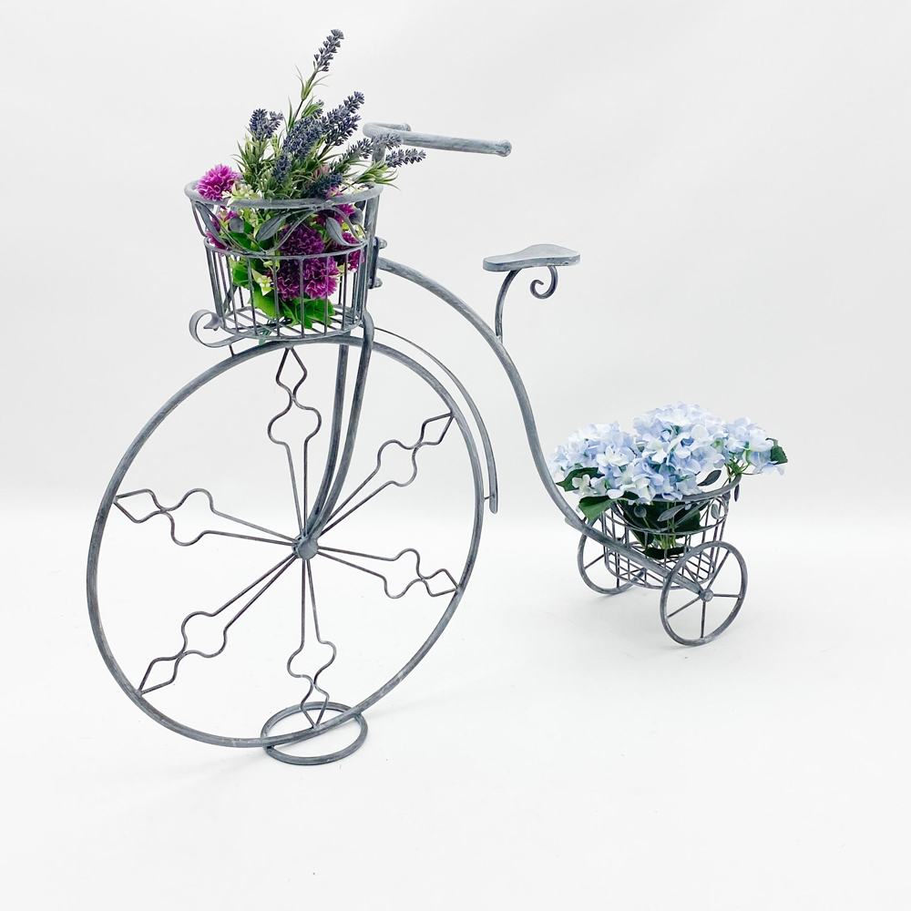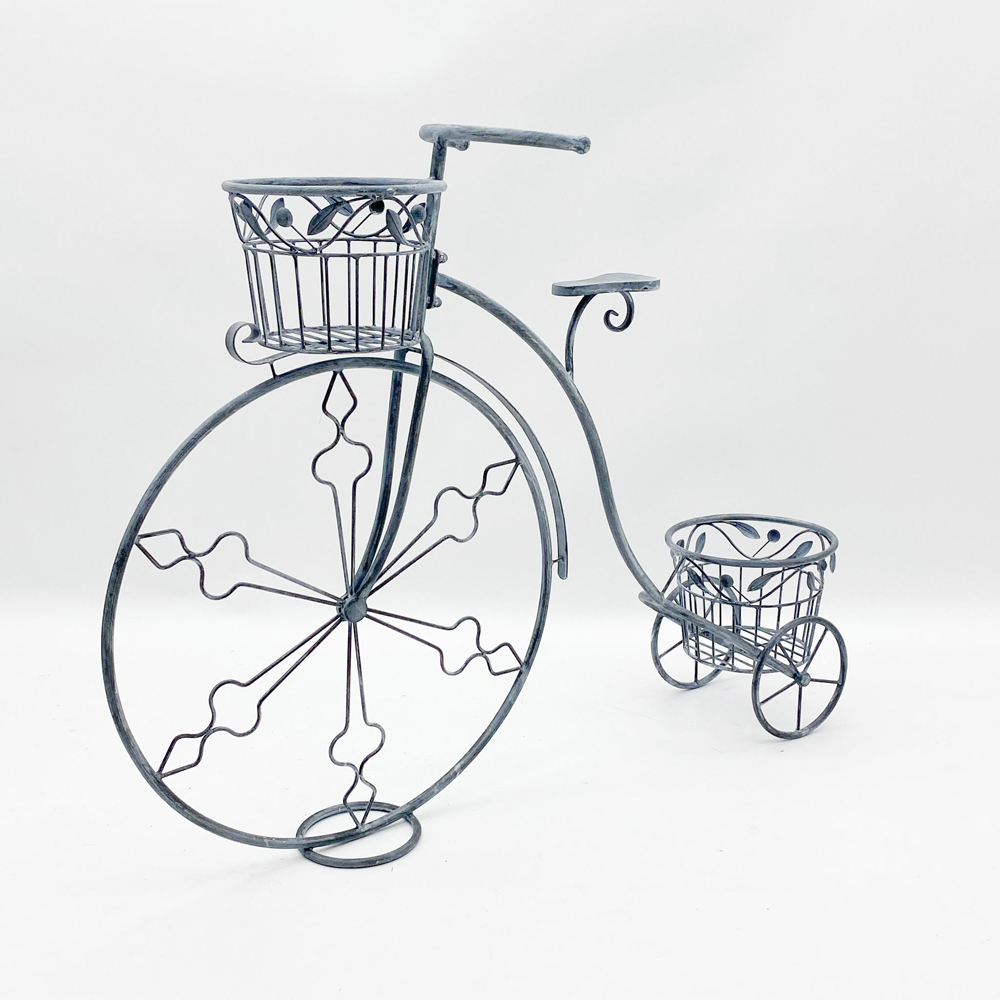Add a unique flair to your garden or patio with this creatively designed metal garden bicycle planter. The distressed paint offers a rustic charm, making it a captivating focal point for any setting. Suitable for indoor or outdoor use, this planter invites you to showcase your favourite blooms in style.