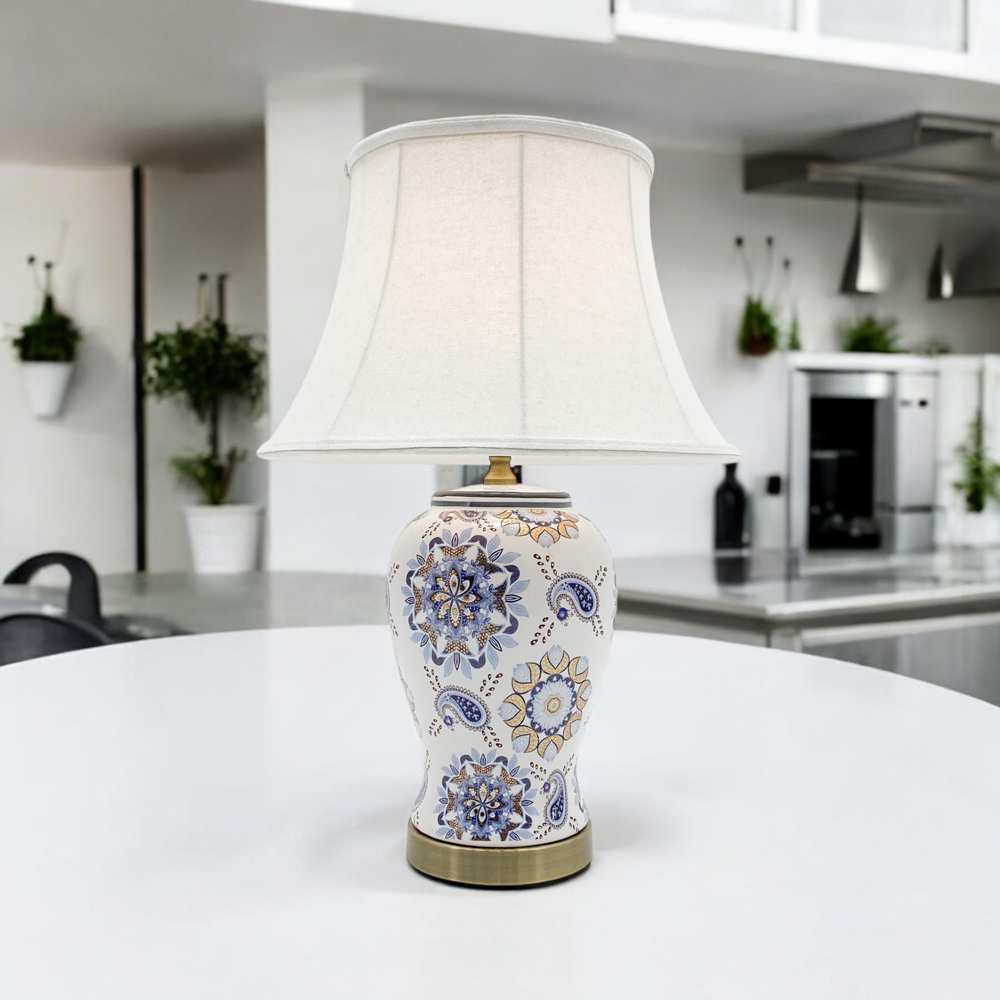Brighten up your home with this Acacia Home White Lamp with Shade 45cm. A traditional design ceramic table lamp base and shade. The lamp is individually switched by an inline rocker switch and is double insulated to allow for safe use without need of an earth wire. Great for lighting in any setting and ideal in a living room or bedroom.