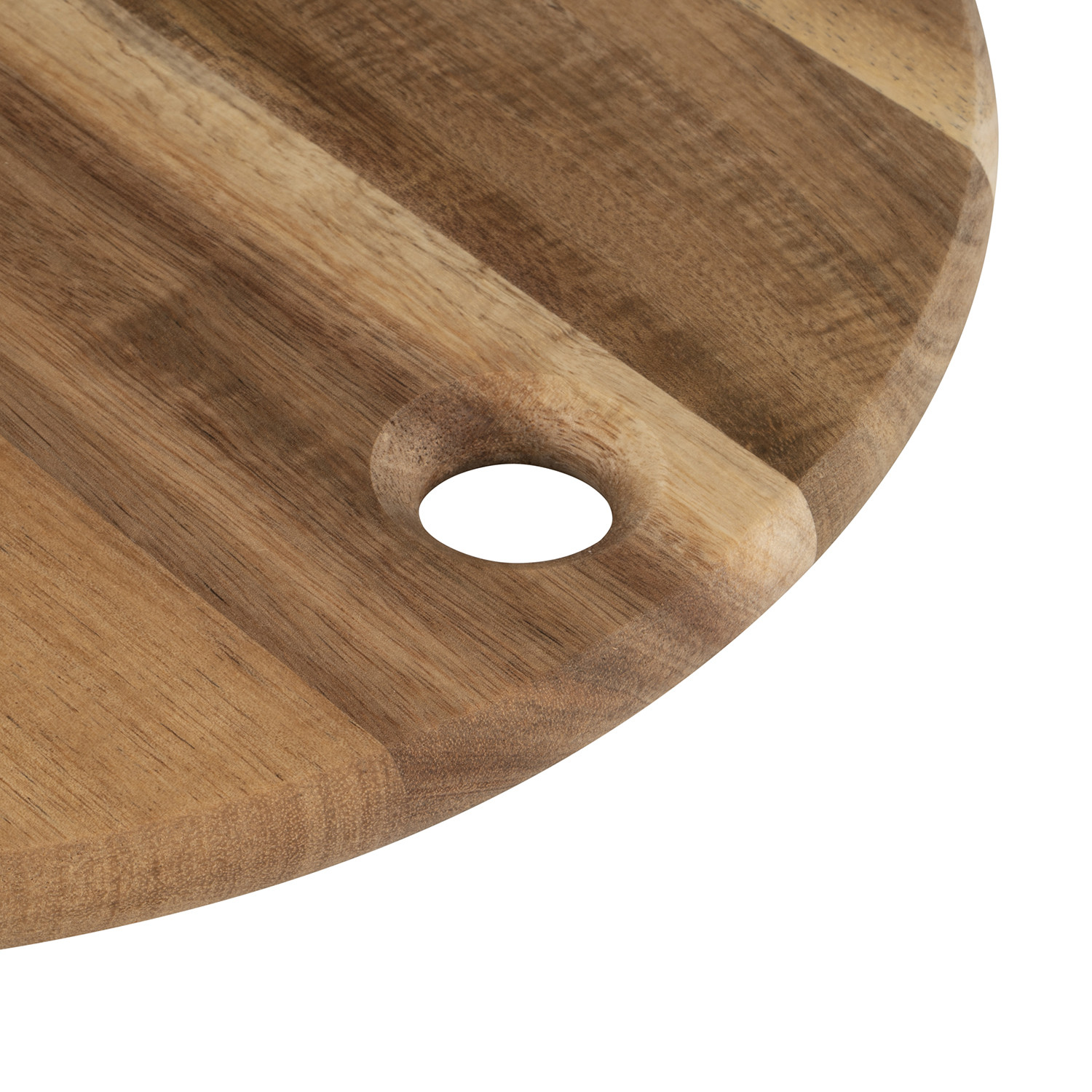 A beautiful addition to your kitchen, this Large Acacia Wood Round Chopping Board is the perfect tool to help prep your meal. Made from durable acacia hardwood, this has natural antibacterial properties that make it ideal for use as a chopping board. An extremely stylish design, this is an essential for any one who loves to cook.