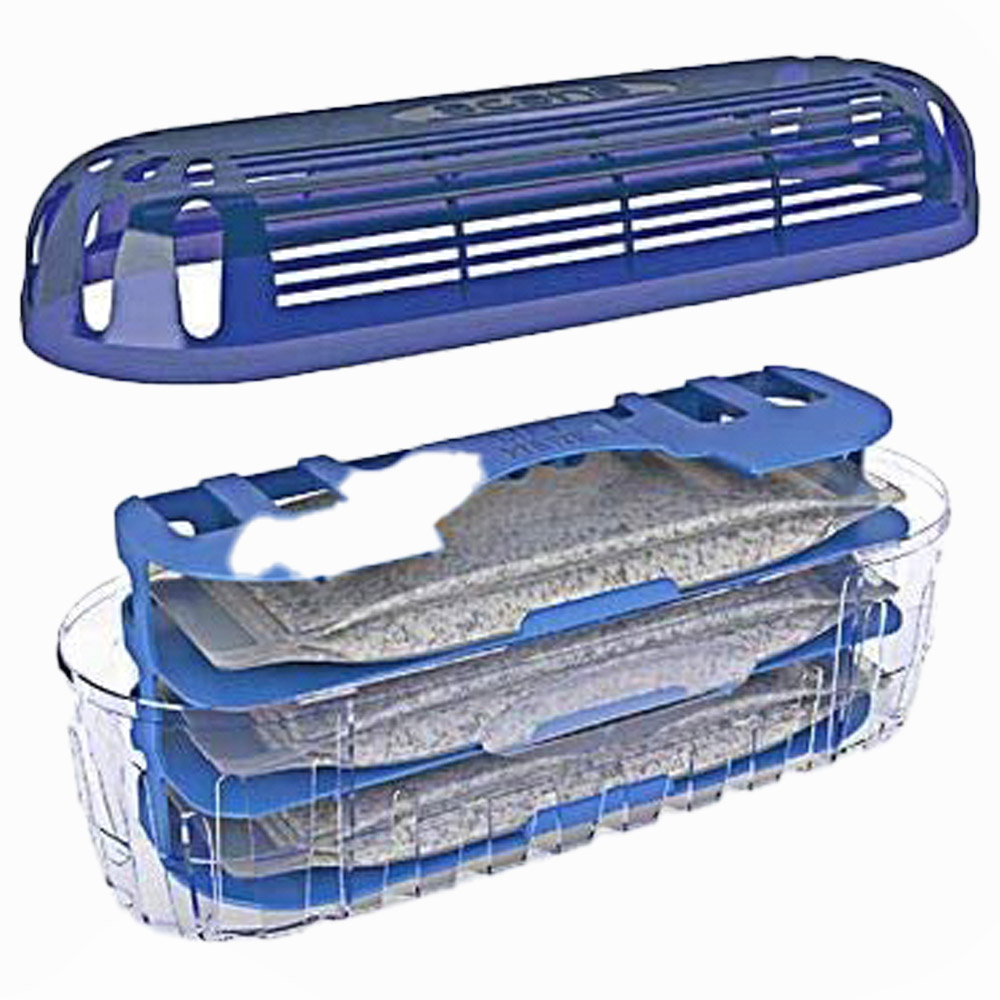 Control moisture, condensation and dampness damage to various household items, unpleasant odours and air quality with this Acana Leak Free Moisture Trap and Freshener. The unique sealed safety cartridges contain an advanced absorbing material formulation, which effectively attracts and locks in moisture, odours and bacteria to prevent any leaks or spills whilst at the same time deodorising and freshening the air with a Cool Marine fragrance. The system is completely refillable and is ideal for larger rooms and spaces of up to 45 cubic metres (average-sized living room). And each loaded cartridge holder effectively absorbs up to 1000ml of moisture. The modern and stylish transparent unit is lockable and allows clear sight of the cartridges, so you know exactly when they need to be replaced.