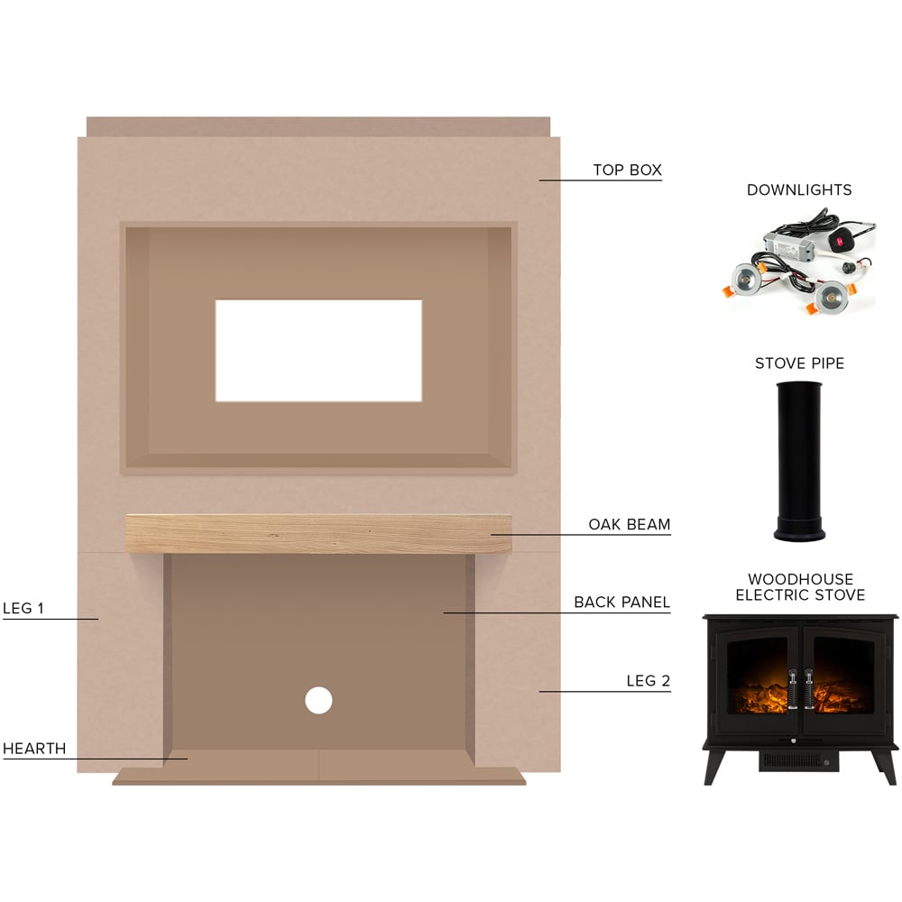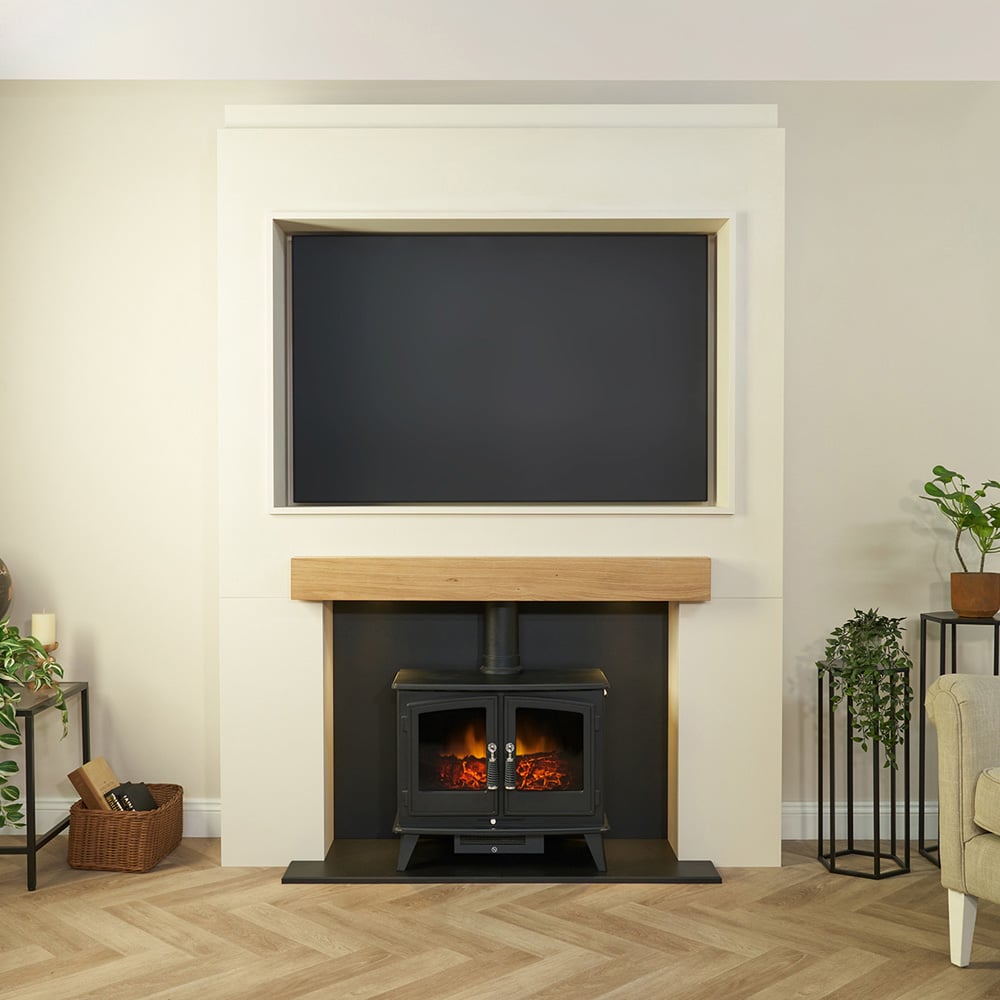 The Acantha Pre-Built Stove Media Wall 2 has been designed with ease of installation in mind, supplied in five unfinished easy-paint parts so that you can create your unique focal point. This high-quality media wall package also includes the brilliant Adam Woodhouse electric stove in black. The Adam Woodhouse benefits from its realistic log fuel bed and LED flame effect as well as a heat output of 0.9kW and 1.8kW that can be easily adjusted using the switches and thermostat control.