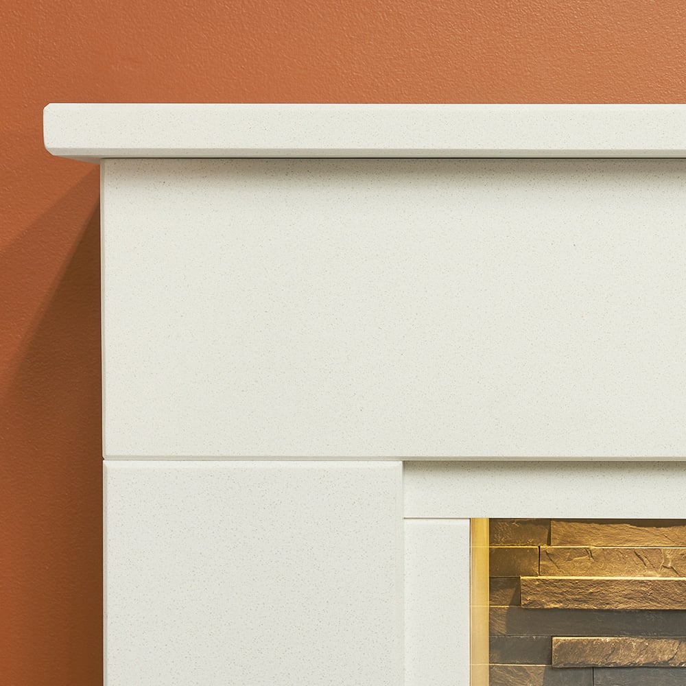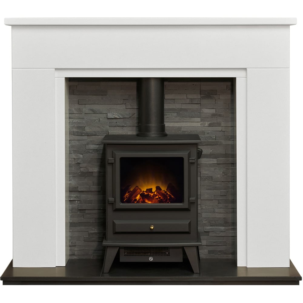 The Acantha Rimini electric stove suite offers an attractive and modern focal point for your home. The surround is finished in exquisite white marble and is combined excellently with the real slate chamber and honed black granite hearth. You will also get a warm and cosy feel with the downlight feature, which can be operated independently via the rocker switch. But what makes this suite stand out is the combination of the straight black stove pipe and the brilliant Adam Hudson electric stove. The stove provides a heat output of 0.9kW - 1.8kW and also features an LED flame effect-only option.