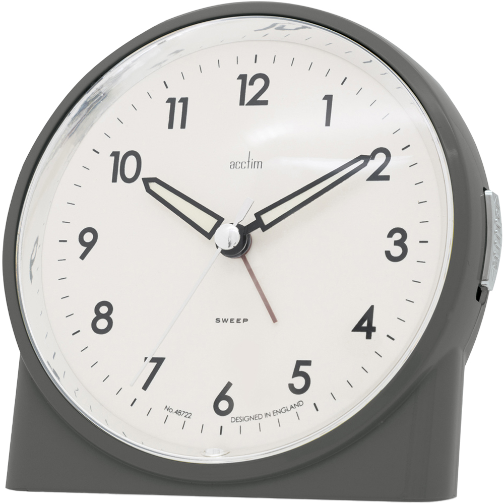 Make a valuable addition to your home with the Acctim Arlo London Sky Sweep Alarm Clock 12cm. This elegant and contemporary analogue alarm clock features an Arabic dial with luminous tipped hands. The clock also features a non-ticking sweep chromed second-hand. It has an on and off button on the side and is framed by a domed lens. With additional features like light and snooze, this clock provides an added convenience.