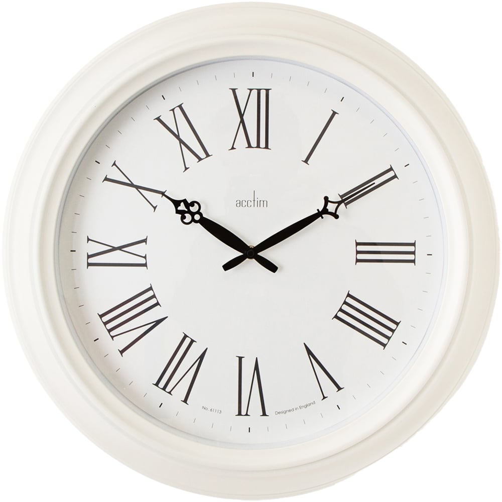 Upgrade your living space with the Acctim Cheltenham Buttermilk Round Wall Clock 50cm. This clock perfectly combines a matt 50cm deep-profile case and an off-white dial with quartz movement. It features black metal hands for a classy finish and a glass lens for added safety. With its black Roman numerals, this clock can be a perfect addition to your home decor.