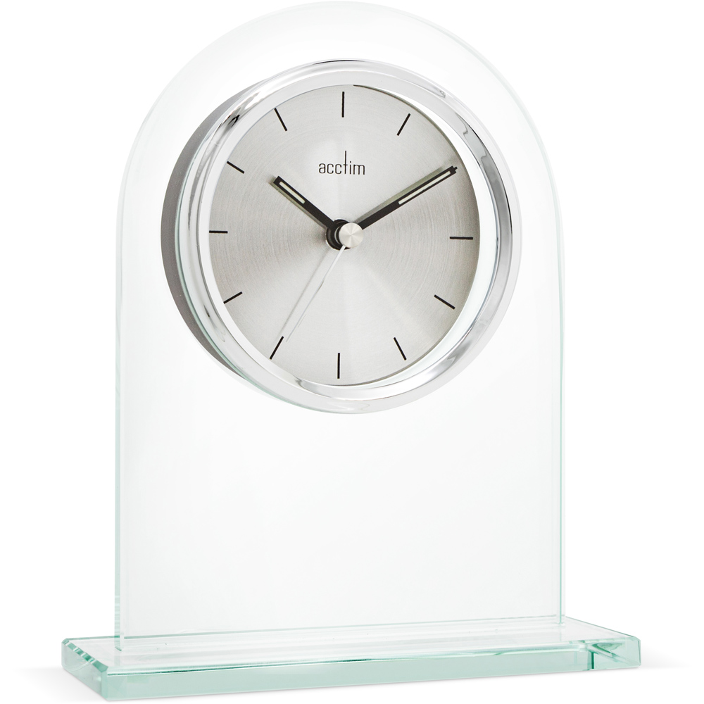 Add a touch of sophistication to your home with the Acctim Ledburn Glass Mantel Table Clock 17cm. This elegant arched mantel clock with a bevelled glass mount features a chromed bezel. The clock also has a spun metal dial with quartz movement and a glass lens. With additional features like luminous tipped hands, this clock provides an added convenience for those nights.