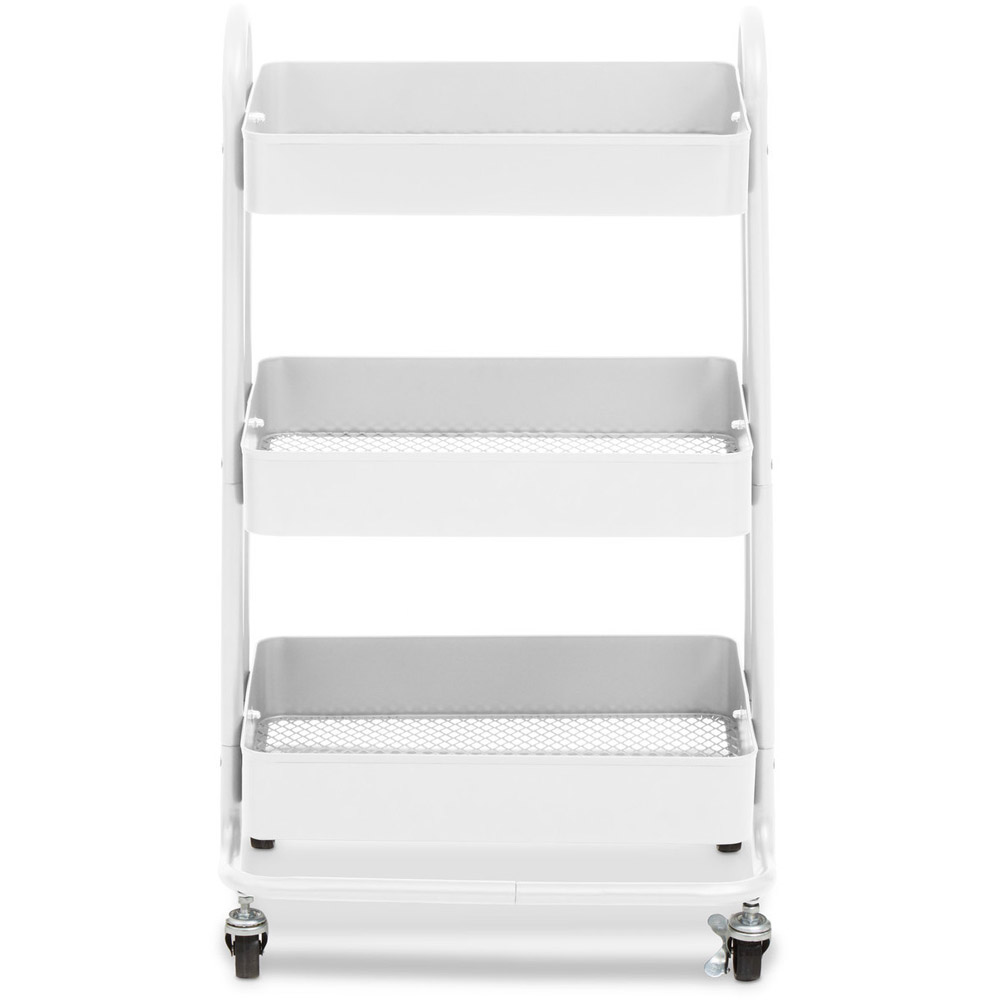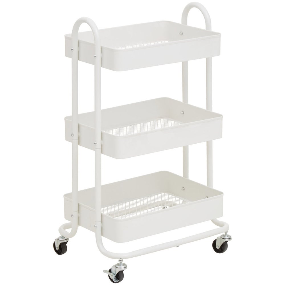 Organise in style with this Acero 3-Tier White Trolley. This unit is perfect to store all your essentials and makes a practical add-on for homes. With three mesh and solid baskets, this trolley is sufficient to store various items. Apart from this, it features a classic white colour to blend well with most interiors. Complete with wheels to make manoeuvring simple.