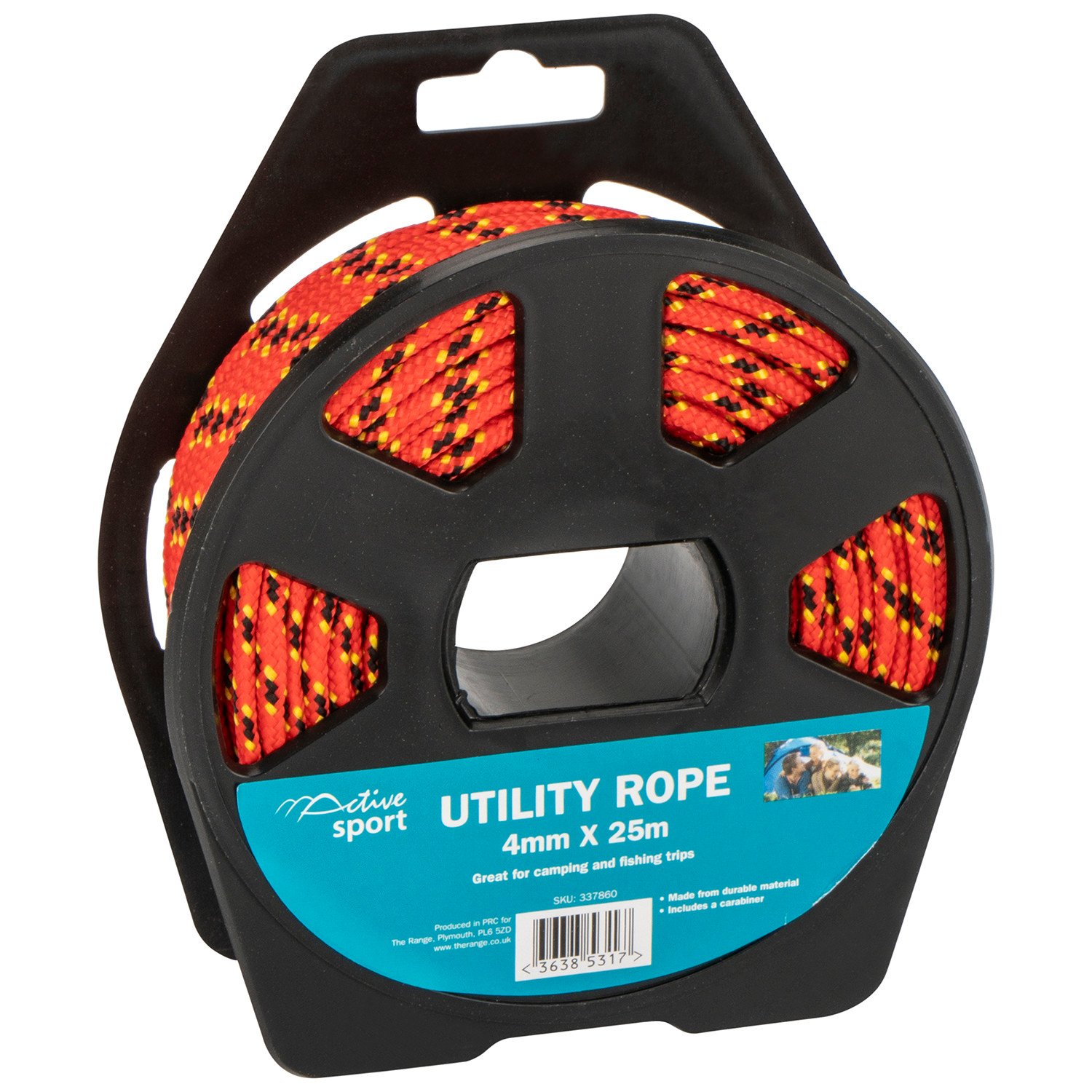 The Active Sport Utility Rope is a versatile tool and a necessary accessory for anyone who loves camping. With a 25-metre length, this rope is ideal for securing shelters or tying luggage. Easy to carry, it is stored in a sturdy plastic winder with a carry hole for effortless transportation and use.