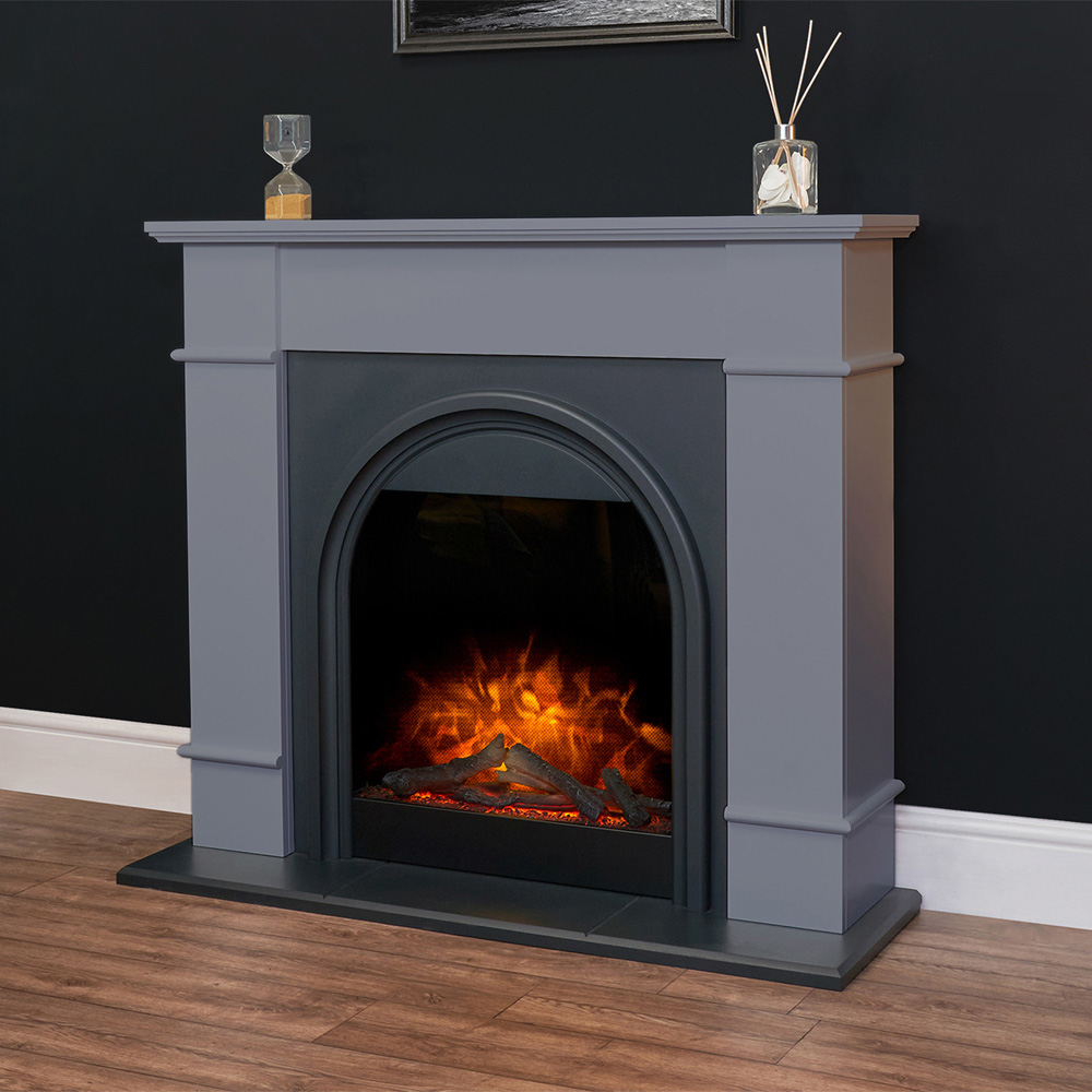 Simple and modern, the Chesterfield fireplace is perfect for a modern, minimalist interior. With a grey finish, this surround comes complete with an electric fire which is guaranteed to impress with its unique LED-X flame effect and log effect fuel bed. This fireplace is supplied with a seven-day programmable timer remote for which you can control the flame effect and adjust the thermostat heat output between 1kW and 2kW.