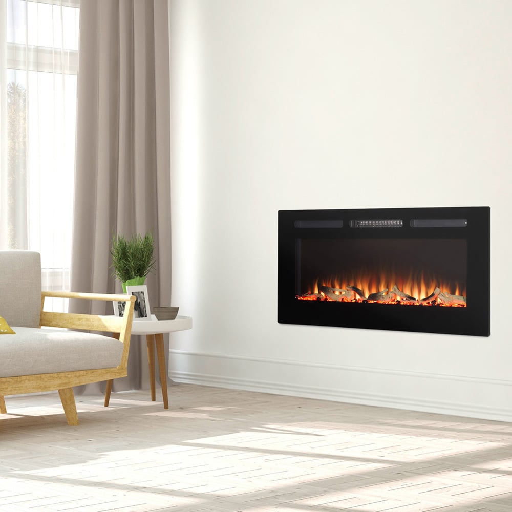 Transform your living space with the Adam Orlando Inset Wall Mounted Electric Fire 42 inch. This stunning piece features an atmospheric log and crystal fuel bed, enhanced by LED flame effect technology and multi-colour settings, creating a captivating ambience. With a heat output of 1kW and 2kW, the Adam Orlando ensures your comfort, all controllable via the supplied remote control with a 7-day programmable timer. The remote also allows you to adjust the flame effect and colour settings to suit your mood. Versatile in design, this fire can be recessed into a wall or easily wall-mounted, making it a striking focal point in any room.