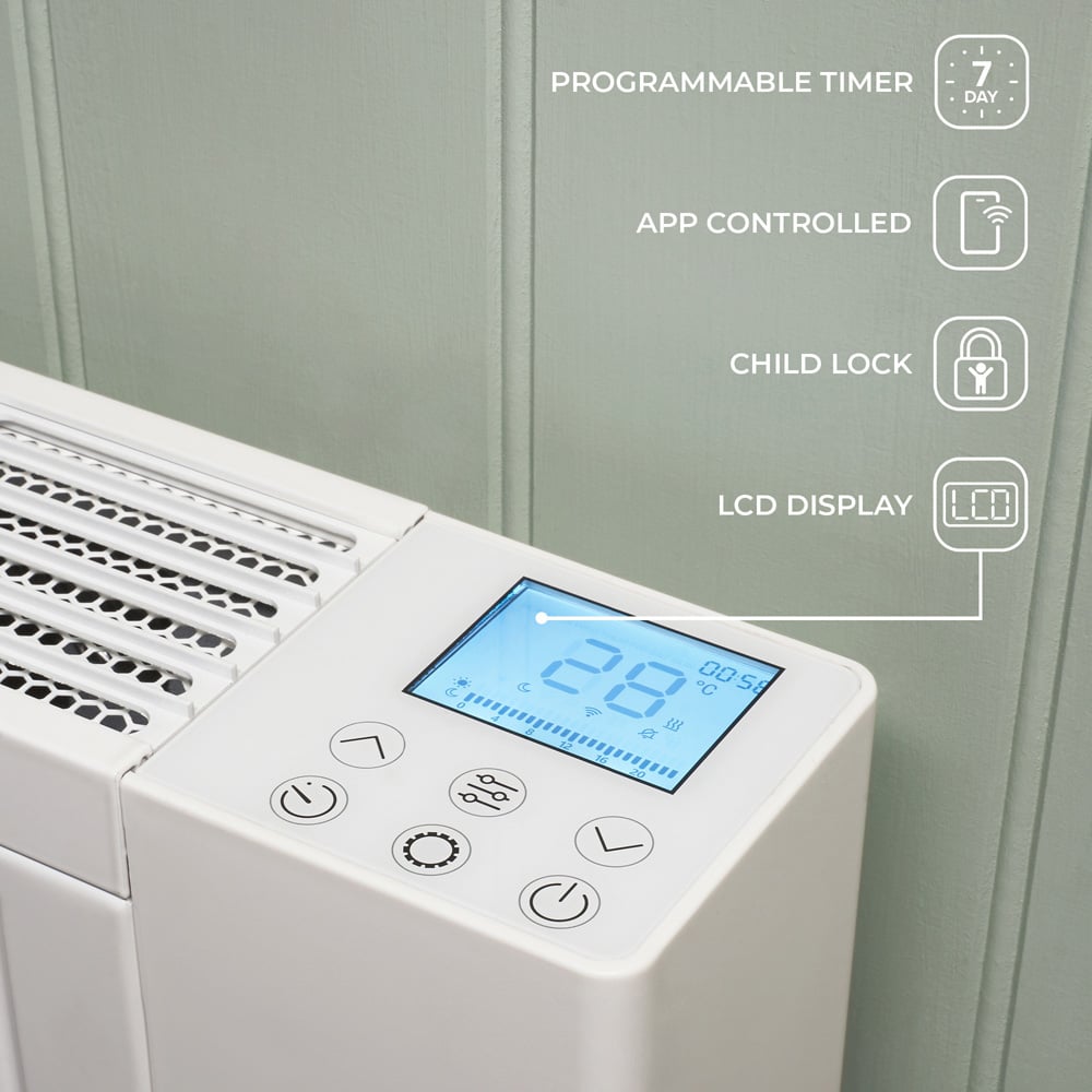 The sleek, stylish and space-saving LOT-20-compliant Adam Sola Ceramic-IQ electric radiator is the perfect alternative to all traditional forms of heaters. Cleverly designed, the 1500W radiator can be easily wall-mounted taking up very little space with no moving parts or pipework required. You can take control of the radiator to suit your lifestyle with the Wi-Fi app which allows you to easily operate the thermostat and 7-day programmable timer. The radiator can also be operated manually via the visually impressive LCD and for added security, the Adam Sola Ceramic-IQ radiator has a secure child lock feature built in for peace of mind.