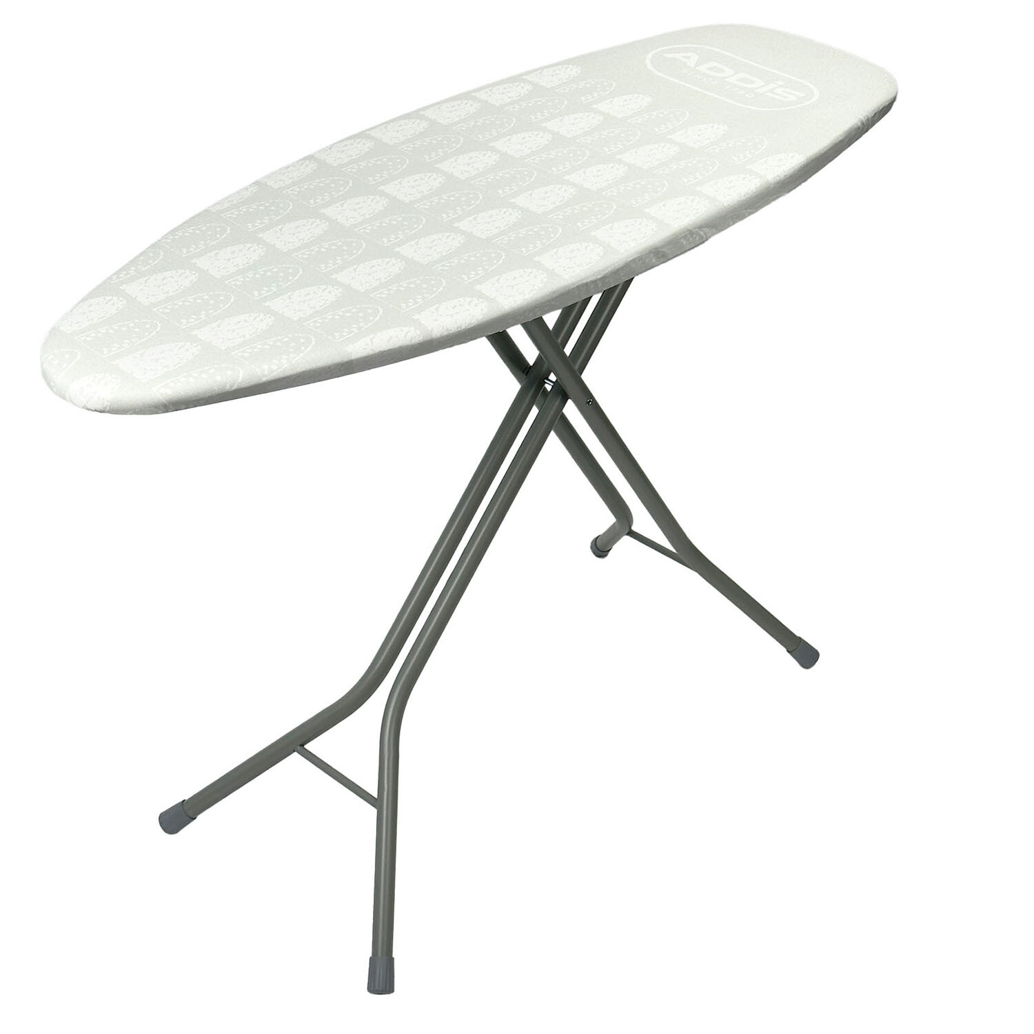 Ensure effortless ironing with this Addis Deluxe Ironing Board Grey. Designed for comfort, this ironing board features a large, smooth surface perfect for handling clothes of all sizes. With an adjustable height, it provides optimal comfort for users while the non-slip feet provide stability during use.