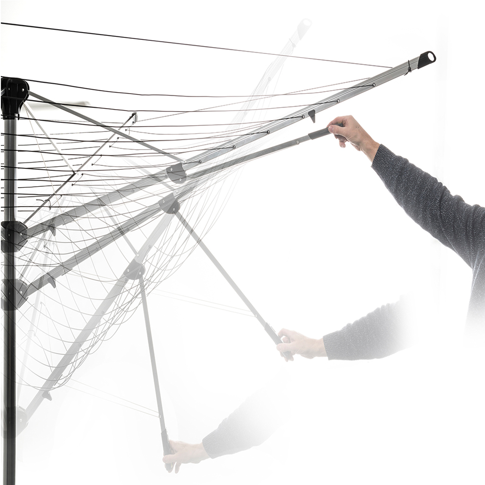 Indulge in the luxury of air-dried laundry with the ADDiS Easi Rotary Airer 46m. This airer features a lever arm, allowing you to easily open and close it with one hand. Simply lift, raise, and lock for a quick and effortless setup. With a turning circle of 3.12 metres, this rotary airer rotates smoothly, making drying faster and more efficient. It provides an impressive 46 metres of drying space, accommodating two to three wash loads at once. Crafted from rust-resistant aluminium, this airer is built to last, ensuring your clothes stay fresh and dry. Plus, it comes with a 50mm metal ground spike for secure installation.