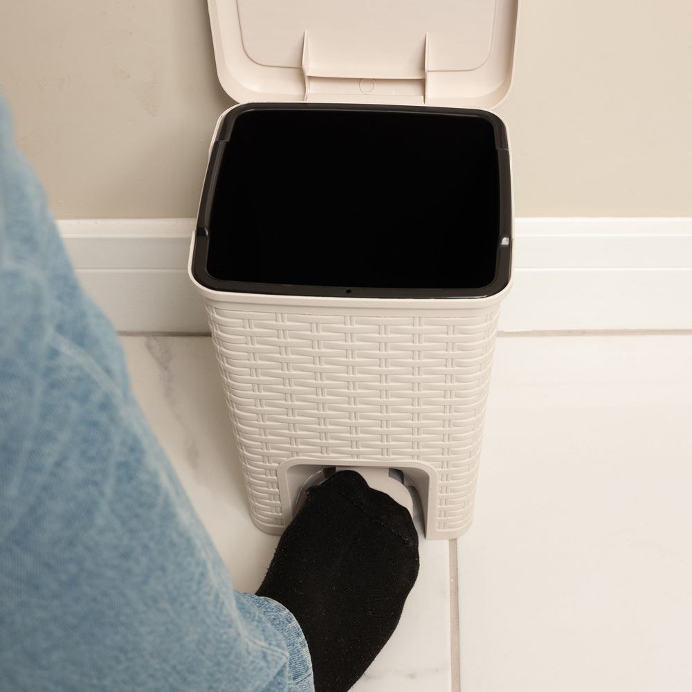 Keep your space tidy with the Addis Beige Rattan Bath Pedal Bin. This stylish bathroom bin is hard-wearing and easy to wipe clean. It has an inner bucket that conceals the bin liner and makes your space look sleek. It features a 6L capacity and pedal operation for convenience.