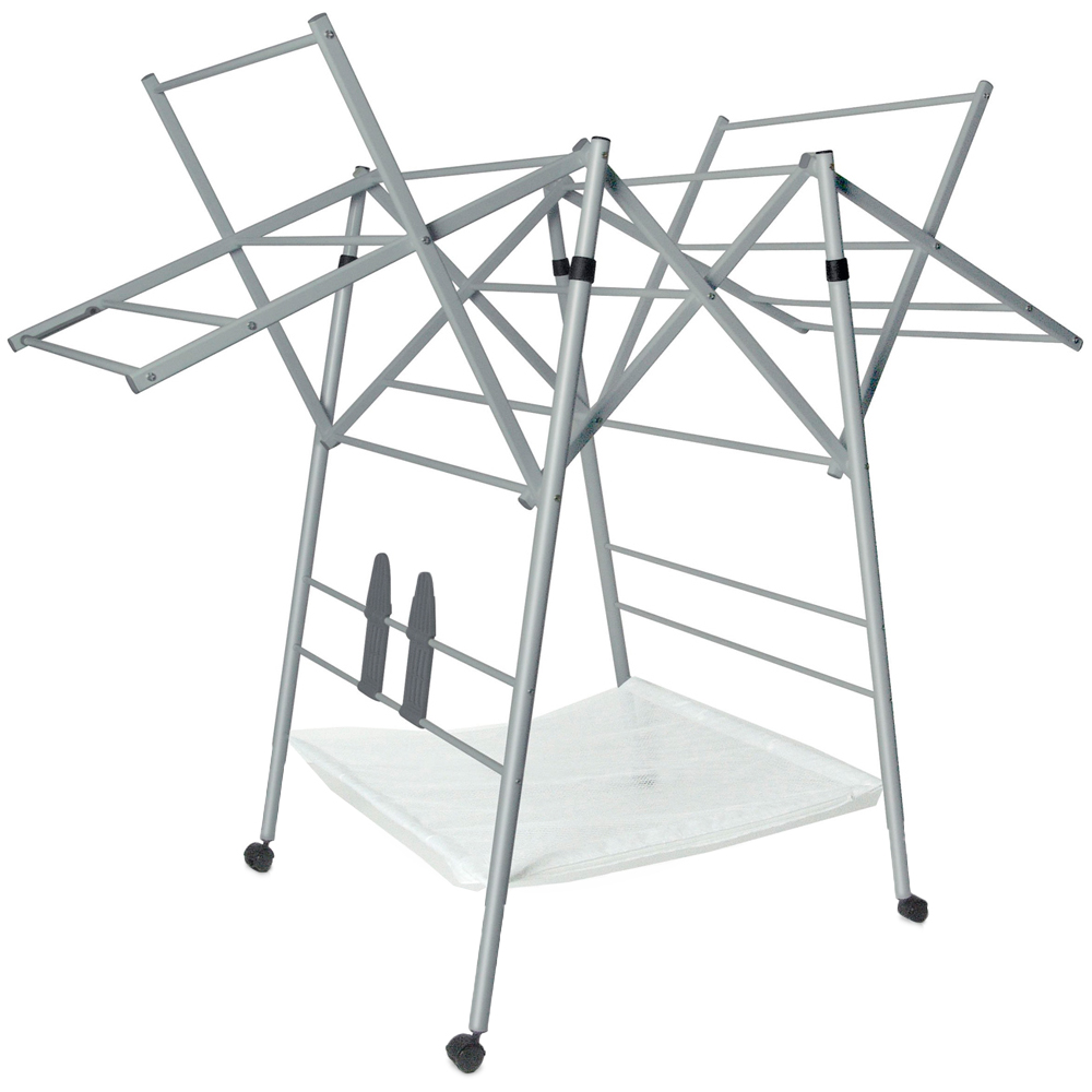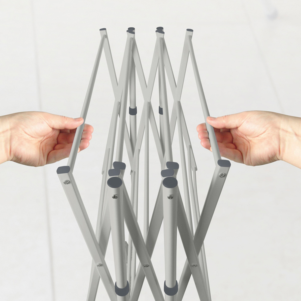 Get the perfect drying solution with the ADDiS Superdry Airer 11m. It is designed to dry clothes faster than traditional airers. It features larger spaces between the bars, allowing for better airflow to dry clothes as early as possible. With 11 metres of drying space, it can hold a substantial amount of laundry. The airer comes with a washbag to protect delicate items while drying. It also includes a holder for footwear, making it versatile for all types of clothing. The built-in casters allow for easy movement, even when the airer is loaded with laundry. When not in use, the airer folds flat for convenient storage. It is equipped with a safety locking clip which keeps the airer securely in place.