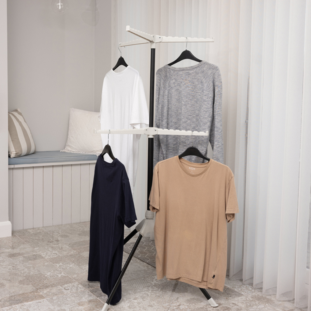 Upgrade your laundry experience with the ADDiS Utility Black 6 Arm Airer. It is a versatile solution for all your drying and storage needs. This airer is perfect for drying clothes straight from the washing machine. You can also use it to neatly organise freshly ironed items. It is specially designed for small spaces, making it easy to fit into any room. With the capacity to hold up to 48 items, it offers plenty of space for your laundry. Additionally, it can be used as a garment rail, providing extra storage when you need it.