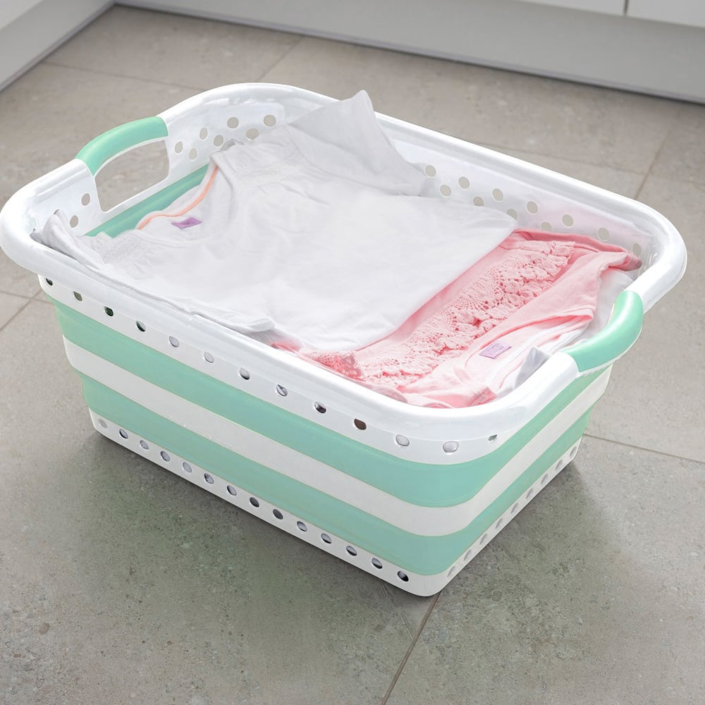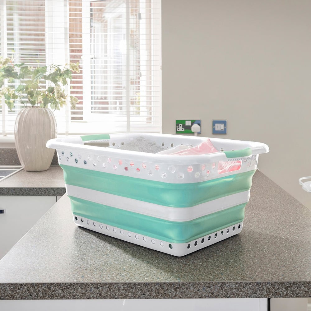 Upgrade to a smarter laundry solution with the Addis White and Blue Collapsible Laundry Basket 45L. It is going to be your ideal solution for keeping laundry organised. This convenient, collapsible basket makes it easy to sort your dirty clothes and freshly laundered items. It features soft handles for comfortable transport, making laundry day a breeze. With a generous capacity of 45 litres, this stylish yet practical basket can hold all your laundry needs. Despite its sturdy design, it easily collapses for storage in a cupboard when not in use. The space-saving design ensures it takes up minimal space, allowing for easy storage. To assemble, simply push the base out, and you are ready to go.