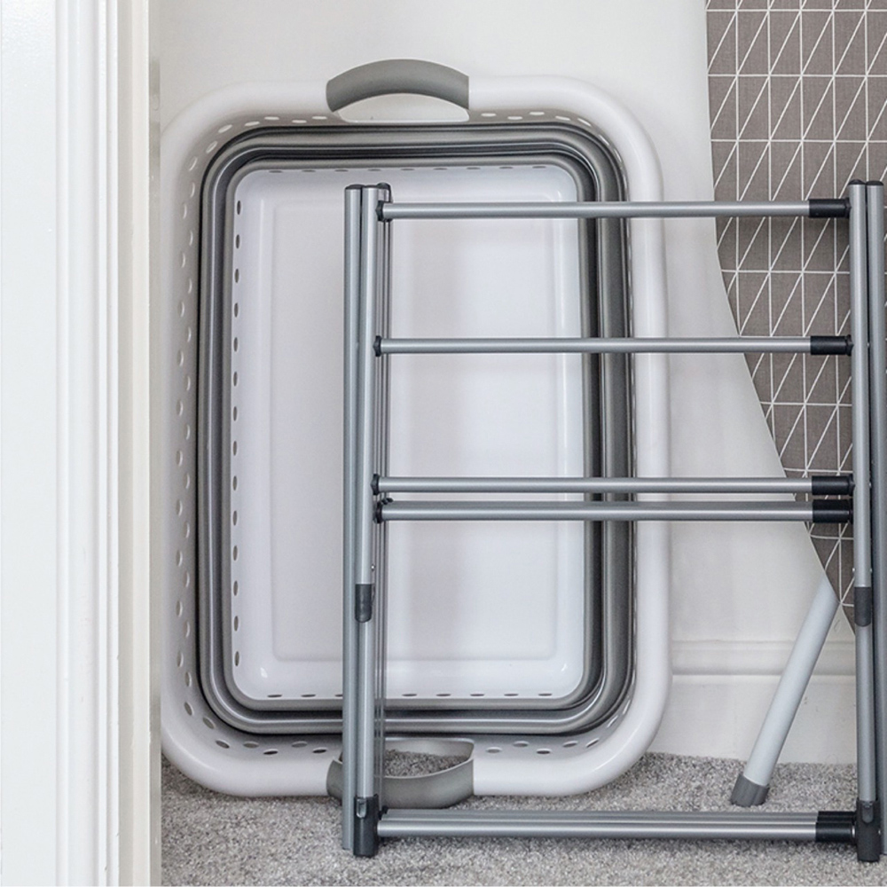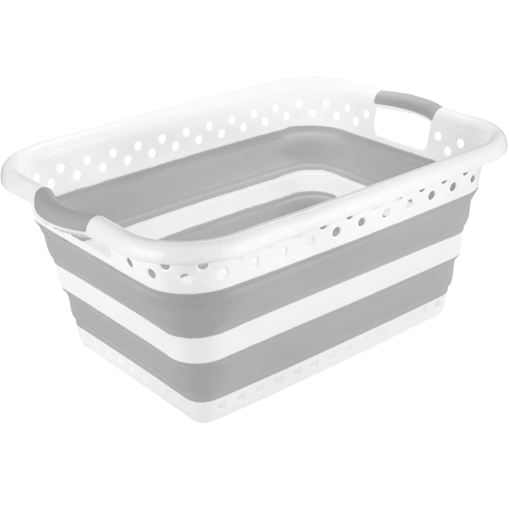 Upgrade to a smarter laundry solution with the Addis White and Grey Collapsible Laundry Basket 45L. It is going to be your ideal solution for keeping laundry organised. This convenient, collapsible basket makes it easy to sort your dirty clothes and freshly laundered items. It features soft handles for comfortable transport, making laundry day a breeze. With a generous capacity of 45 litres, this stylish yet practical basket can hold all your laundry needs. Despite its sturdy design, it easily collapses for storage in a cupboard when not in use. The space-saving design ensures it takes up minimal space, allowing for easy storage. To assemble, simply push the base out, and you are ready to go.