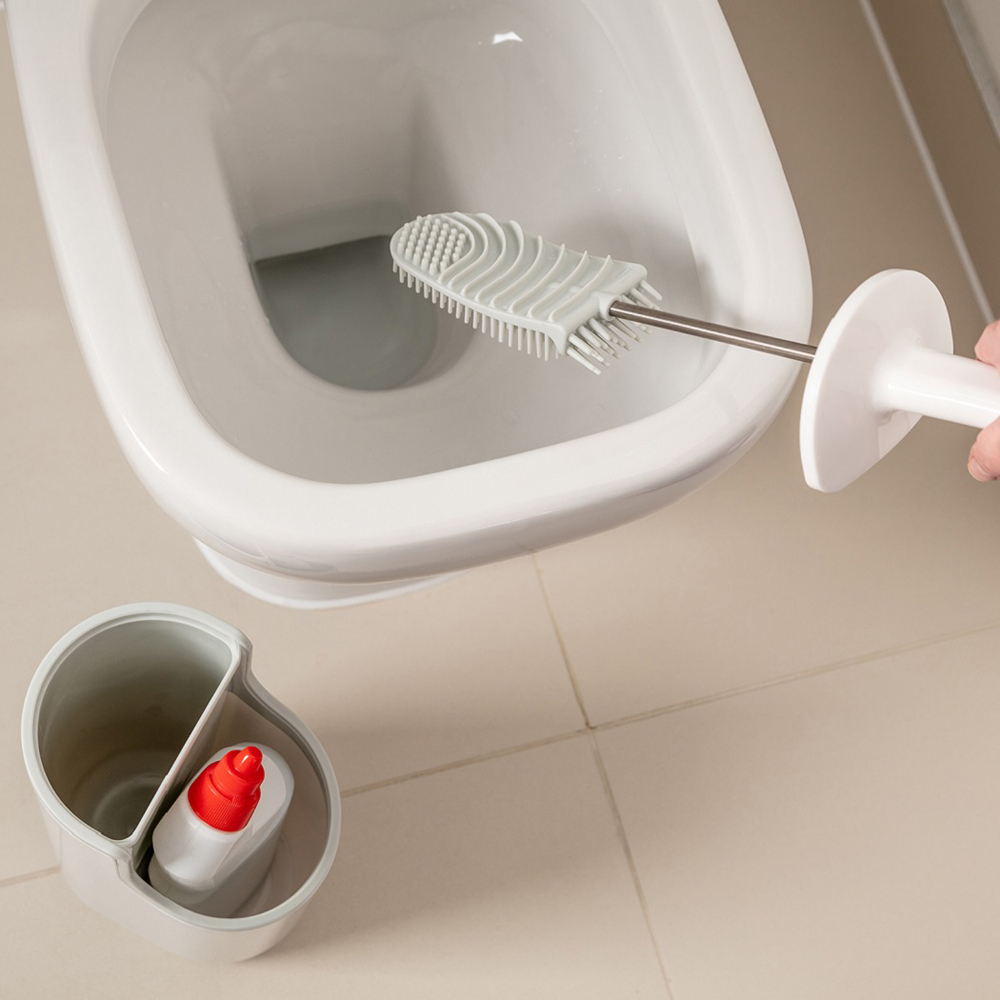 Uplift your bathroom organisation with the ADDiS White and Grey Toilet Brush with Holder. It is going to be your go-to solution for a cleaner bathroom. This premium toilet brush features a non-slip long handle that provides a comfortable grip and prevents slipping during use. The anti-clog bristles ensure effective cleaning without getting stuck, making your tasks easier. Its modern closed design looks sleek and keeps your bathroom safe by enclosing the brush when not in use. The stable base holder ensures it stays upright and secure. The ultra-flexible D-shaped cleaning head pad is perfect for reaching under the rim and tackling tough spots. Plus, the strong metal handle offers a wide neck for added control and durability. For extra convenience, there is a discreet built-in holder for your cleaning detergent bottle, keeping everything organised and hygienic.