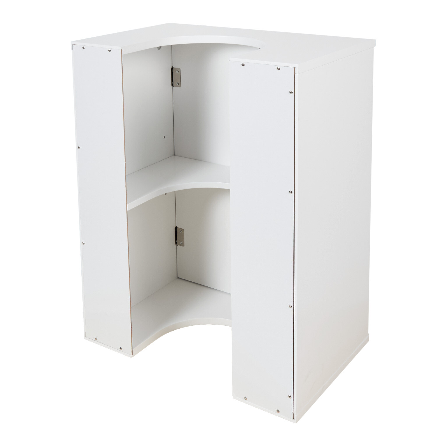 Introducing the Adeline Under Sink Storage Unit, a perfect blend of style and functionality for your bathroom. With an adjustable shelf and a clean white finish, it harmonises beautifully with any decor theme. The convenient two-door design covers pipes while conserving floor space, providing ample storage for everything from toilet rolls to cleaning supplies.