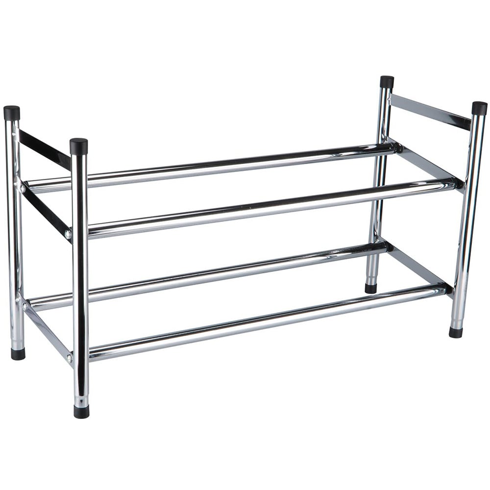 Keep your shoes neat and tidy by placing them on this Chrome Multi-Tier Shoe Rack. Available with either two or four shelves, it will fit easily into your hallway or by your backdoor for convenience. With an adjustable length, you can make sure this shoe rack best suits your needs.
