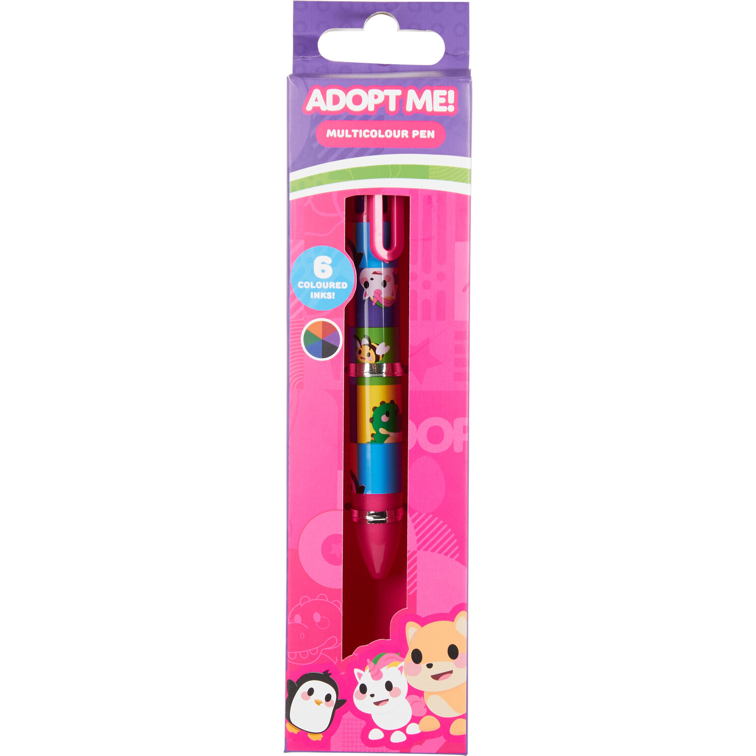 Make a fun addition to your stationery supplies with the Adopt Me 6 Colour Multicolour Pen. This multicoloured pen offers six vibrant inks to choose from, allowing you to add a splash of colour to your projects and writing. Perfect for personal or professional use, this pen features cool cartoon inspired Adopt Me characters for a stylish look.