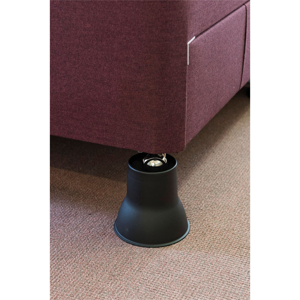 Experience easier sitting and standing with sturdy grey plastic furniture risers that discreetly lift beds and chairs by nine centimetres, making daily mobility smoother for those who need a little extra support. Each set features four strong one-piece elephant feet with extra wide tops to fit most furniture legs and a clever central recess to keep castors secure, blending seamlessly with your home while helping you maintain independence.