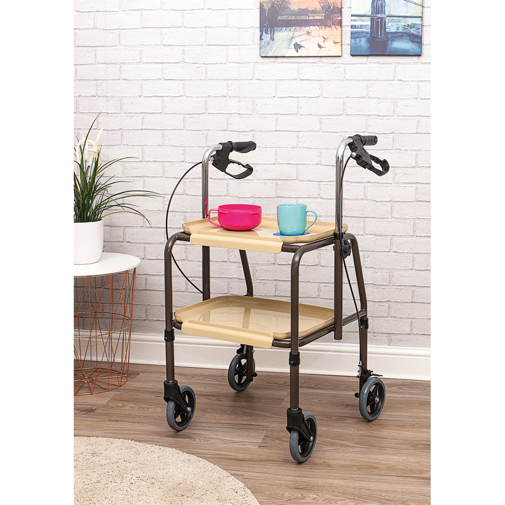 Effortlessly move meals and essentials around your home with a lightweight mobility trolley featuring safety brakes and height adjustment, designed to offer added confidence for seniors. Height-adjustable handles and clip-on trays make daily tasks more manageable, while handle brakes ensure extra peace of mind. Durable materials and innovative polypropylene castors with wheel guards help prevent hair and fibre build-up, keeping maintenance simple. When not in use, it folds compactly for easy storage and transport, perfect for any living space.