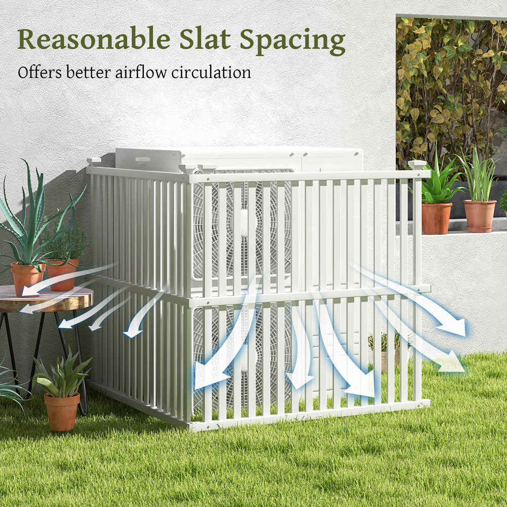 Transform your outdoor space with the Costway White Air Conditioner Fence Panel. Its sturdy metal ground stakes ensure stability in soft ground conditions, with a recommended depth of 25cm. The installation is super easy, just position the stakes, drive them in, and attach the panels. Made from high-quality PVC, this fence is built to last in your garden. Its slatted design promotes airflow, making it ideal for hiding AC units. Plus, it doubles as a stylish fence, privacy screen, or enclosure for pool equipment. Additionally it features the protective caps that give it a more refined look.