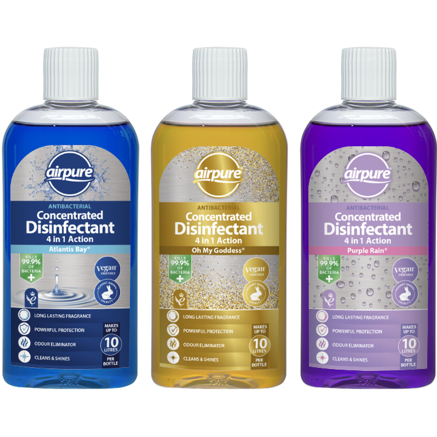 This Airpure Concentrated Disinfectant is the ideal cleaning companion around the home. Perfect for cleaning nearly every surface in the home, it makes up to 10 litres when diluted. In an assortment of three scents, you will receive either Atlantis Bay, Oh My Goddess or Purple Rain to leave a wonderful fragrance in your home.