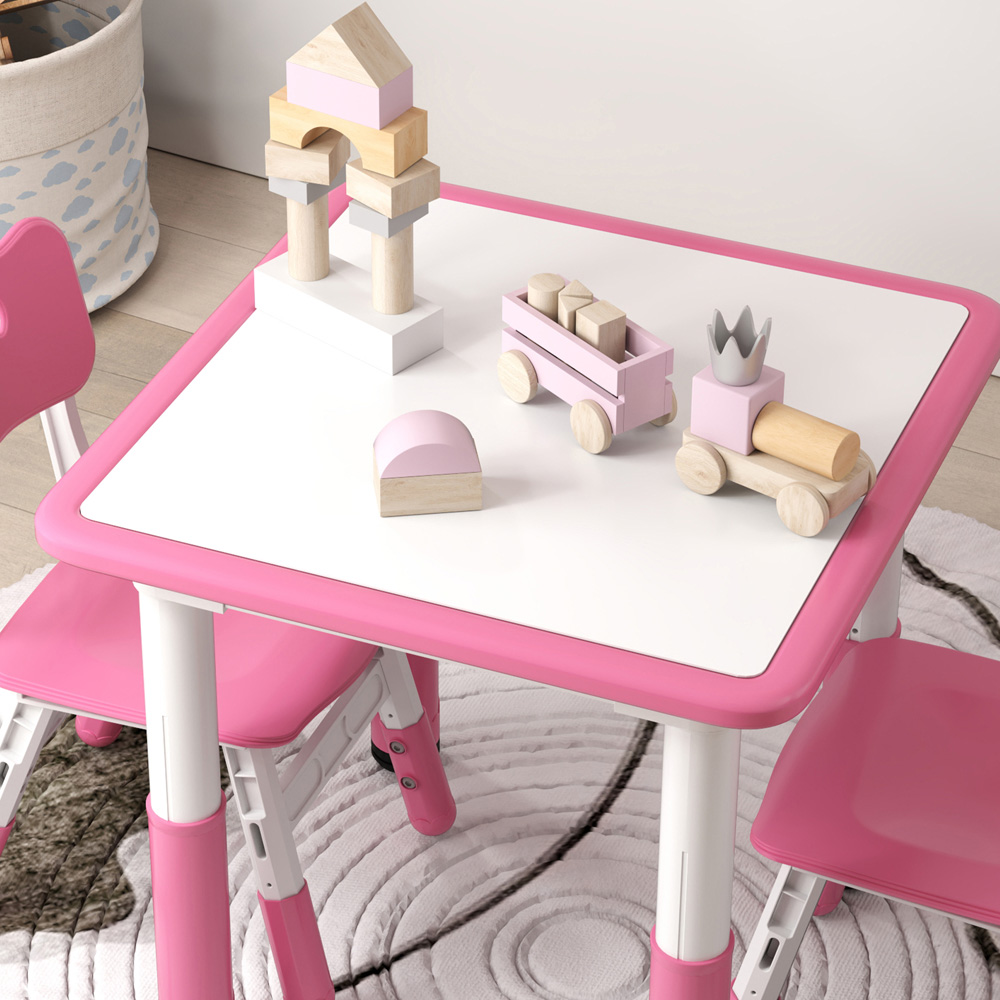 Discover the joy of learning with the AIYAPLAY toddler table and chair set. Perfectly adjustable with seven height levels for the table and three for the chairs, it grows with your child. Great for any setting from home to school, this kids desk and chair set features a smooth, easy-to-clean surface. Plus, the chairs tuck neatly under the table to save space.