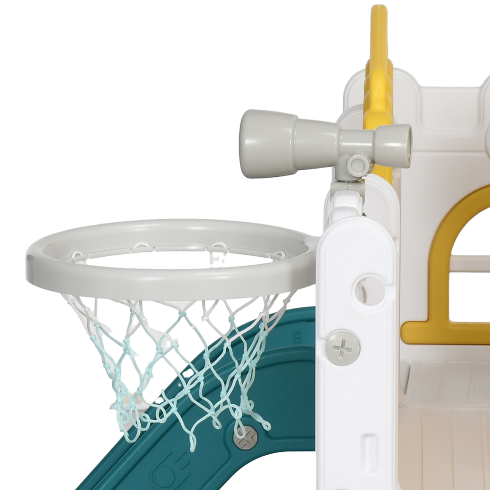 Turn your home into a fun-filled playground with the seven-in-one AIYAPLAY toddler slide. It features a thrilling slide, basketball hoop, telescope, tunnel, steering wheel and climber, bringing endless fun and excitement! Safety is a top priority, with an acceleration zone, deceleration area and buffer zone for smooth and safe sliding. Suitable for ages 1-3 years, it encourages active play and sparks their imagination, making it a fantastic indoor play centre.