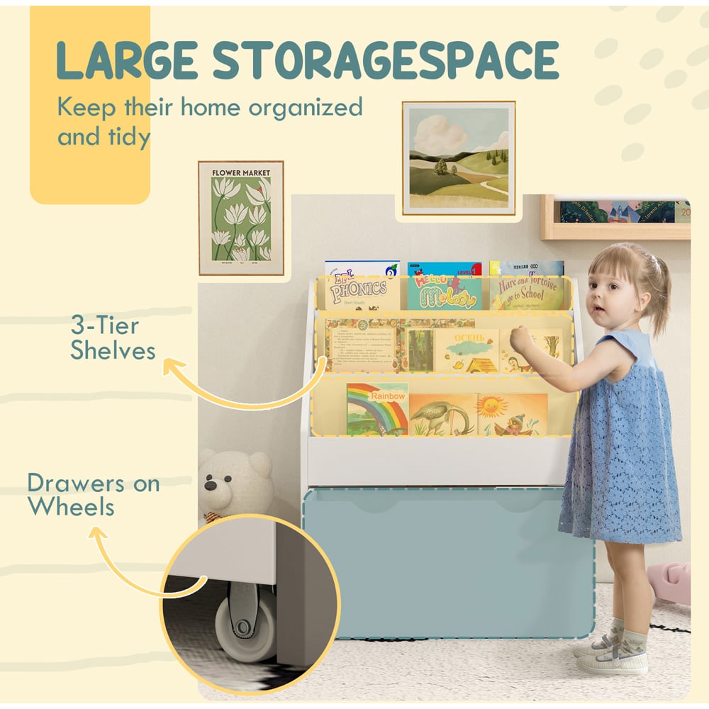Discover a world of tidy with the AIYAPLAY Kids Bookcase, a charming white bookcase designed to keep your kid's room clutter-free. With three spacious shelves and a handy drawer on wheels, this children's bookcase makes storage fun and accessible. Safety is paramount, featuring a smooth surface and an anti-tip device for peace of mind. A delightful addition to any child's space.