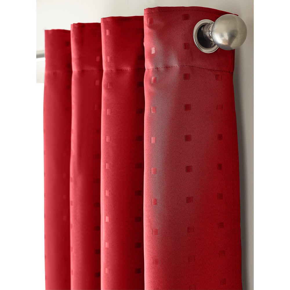 Elevate your living space into a luxurious retreat with the Alan Symonds Madison Red Ring Top Curtain. The curtain exudes an ageless appeal that will add timeless beauty to your home. The heavy-weight poly-dobby fabric and contemporary eyelet heading make for an elegant and modern look. Made of 100% polyester, it is easy to maintain and can be machine-washed. The small woven square design adds sophistication to your space, reflecting your unique style and personality. Not only does the curtain enhance the ambience of your room, but it also helps regulate the temperature by providing insulation. The fully lined medium-weight drape keeps your space warm in winter and cool in summer. Let the curtain transform your space into a comfortable and stylish haven where you can relax and entertain guests in style. Size: 229 x 183cm.