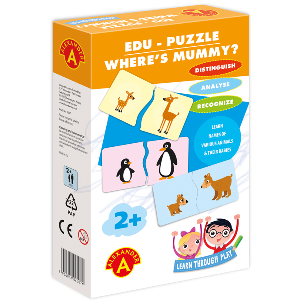 Sharpen your child's memory with the Alexander Where is Mummy Puzzle. It is a set of easy to assemble two-piece puzzles. Scatter the pieces randomly on a flat surface and try to match them in pairs. The playsets help children train their perceptiveness, associative skills, and manual dexterity.
