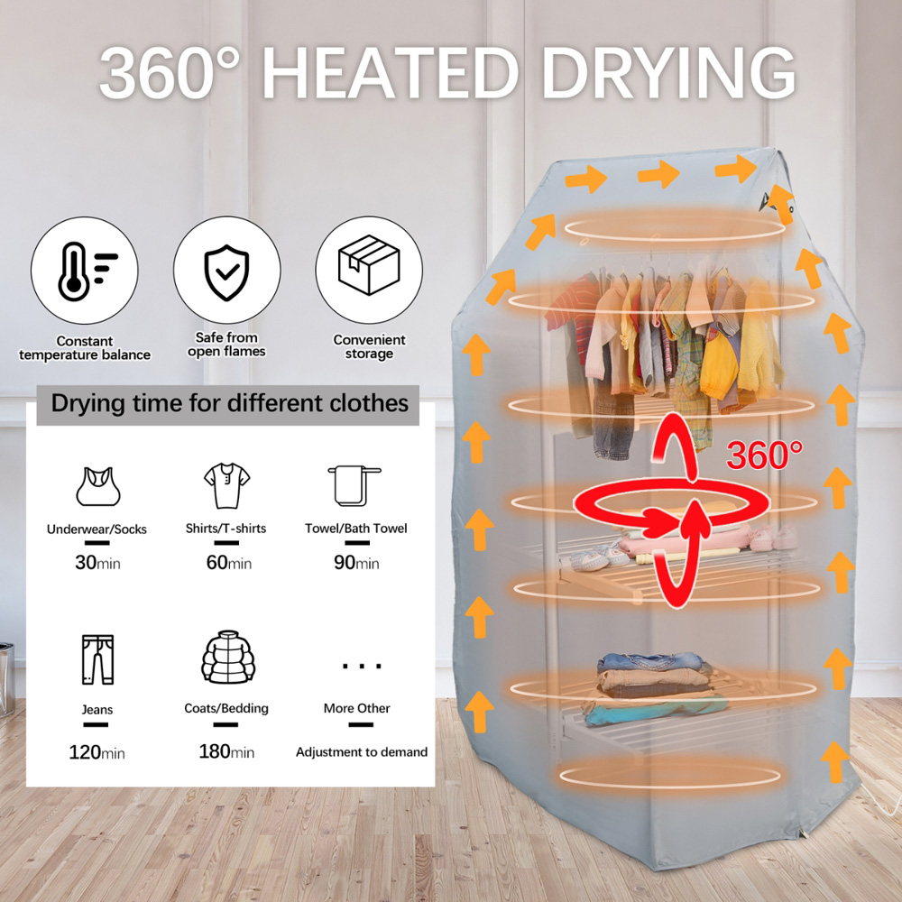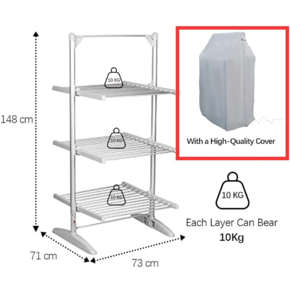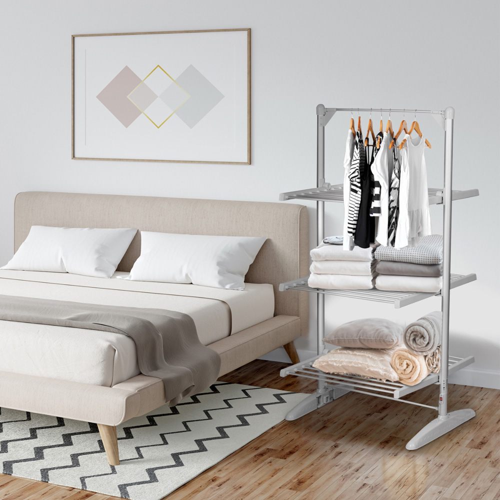 The Alivio 3-Tier Heated Airer is an electric clothes-drying solution designed for quick and efficient drying. With three tiers of drying racks, it offers ample space to hang clothes while providing gentle warmth to speed up the drying process. Its foldable design makes it easy to store when not in use, saving space and ensuring convenience for smaller homes or apartments. This product is perfect for people who want to dry clothes indoors without the hassle of traditional dryers, especially during colder or rainy months. It's ideal for homes, apartments, or even for use in areas with limited space.