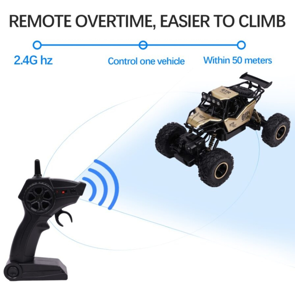 Unleash the thrill of off-road racing with the Alloy Off-Road Race Truck RC Toy, a rugged and high-performance remote-controlled vehicle designed for all-terrain adventures. Featuring a durable alloy chassis, this truck is lightweight yet tough enough to handle bumps, jumps, and rough play. Its oversized, anti-skid tyres and robust suspension system ensure smooth performance on dirt, gravel, sand, and rocky landscapes. Powered by a high-speed motor, the truck can reach speeds of up to 25 mph, delivering adrenaline-pumping excitement. The 2.4 GHz remote control offers precise, interference-free operation with a range of up to 100 meters, making it perfect for solo runs or competitive racing. Equipped with a rechargeable battery for extended playtime and a convenient USB charger, this RC truck is built for endless fun. Boasting a sleek, aerodynamic design and vibrant decals, the Alloy Off-Road Race Truck brings the excitement of a real race truck to life. Whether you're tackling rugged trails, racing at the park, or performing stunts, this truck is ready to dominate the terrain. It’s the ultimate gift for children, teens, and hobbyists who crave adventure and competition.