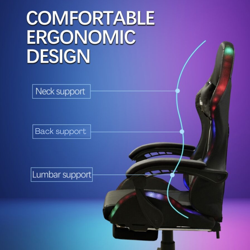 Immerse yourself in the action with one of our gaming chairs. Designed with comfort and durability in mind, gaming chairs are a sleek and comfy way to spend some time in the world of your favourite games, or equally useful for a long workday when you need to be at your most productive. Our gaming chairs are fully adjustable to work with any height of gaming desks and provide ample support for long sessions of work or play!