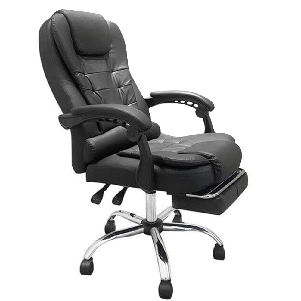 Alivio Office Executive Massage Swivel Recliner Chair, made of PU leather, is sturdy and durable, thick and firm, and easy to clean and maintain. It has a heavy-duty base and nylon smooth-rolling casters for great stability and mobility. The available reclining degree is between 90°-135°, so you can adjust any angle you like. The adjustable height provides comfort support, and the footrest is flexible to pull out or in. You can relax your body greatly when on the chair for gaming or during your work break. You can find your comfortable height with the seat adjustment and 360° swivel. The massage chair is suitable for the gaming room, bedroom, office, living room or study room. It comes with a massage lumbar support and is comfortable and durable. Enjoy a comfortable experience from the body to the heart. The lumbar support is great to keep your back straight. All details and easy-to-understand installation instructions are provided for quick assembly.