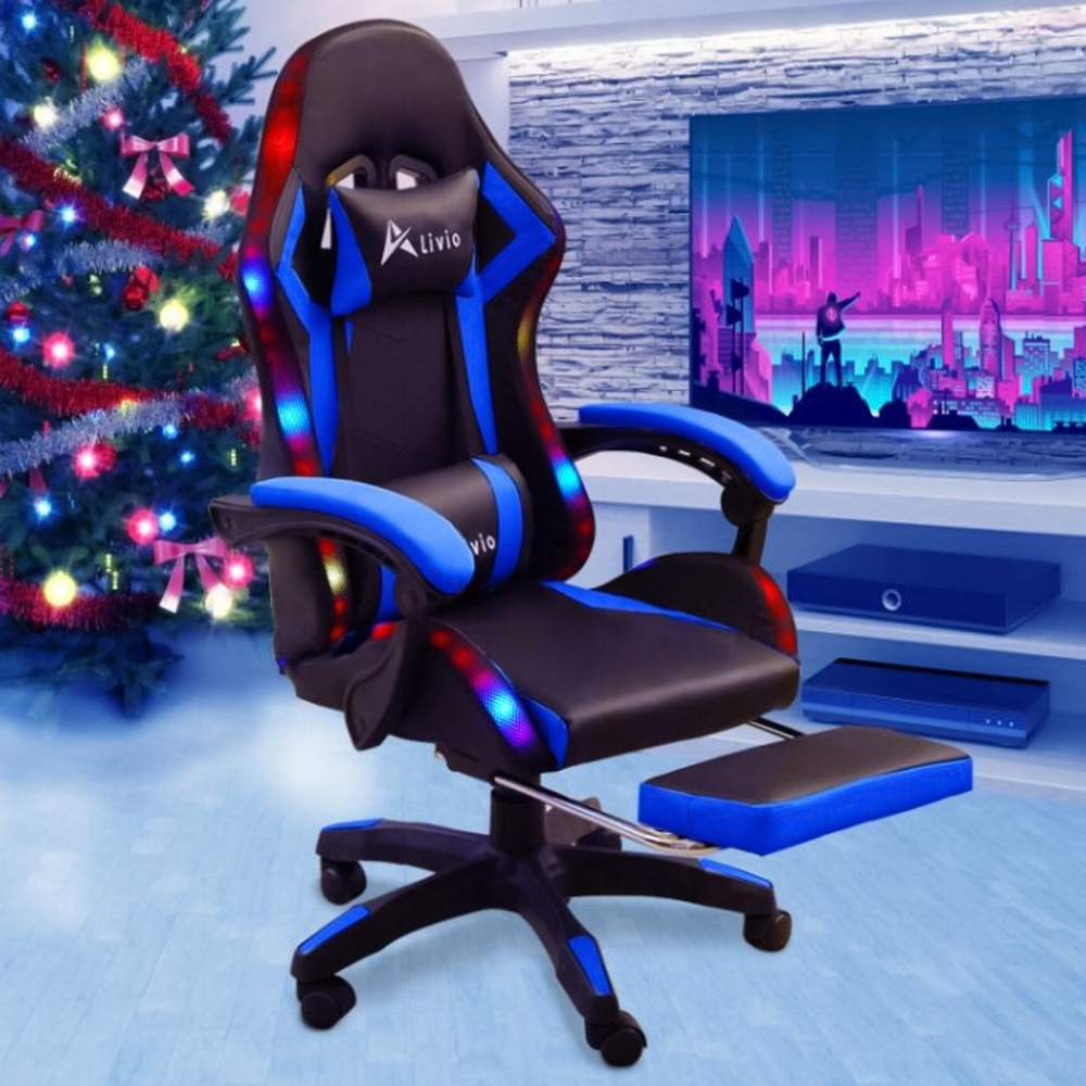 TTAP Monaco Black and Blue Faux Leather Swivel Gaming Chair
