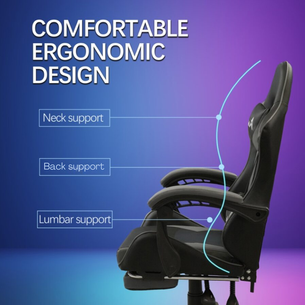 Immerse yourself in the action with one of our gaming chairs. Designed with comfort and durability in mind, gaming chairs are a sleek and comfy way to spend some time in the world of your favourite games, or equally useful for a long workday when you need to be at your most productive. Our gaming chairs are fully adjustable to work with any height of gaming desks and provide ample support for long sessions of work or play!