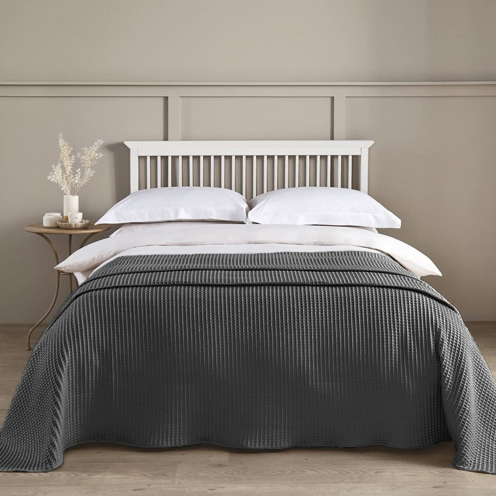 Incorporate additional texture to your sleep space with this tactile waffle throw bedspread, the ultimate in luxury. Its cool colours imparts a calming feel to any bedroom interior, whilst its versatile design makes the ideal foundation for any number of bedding design and is perfect for adding a modern look. The deep waffle weave ensures the blanket is very soft, retains warmth and provides just adequate insulation depending on body and atmospheric temperature making it ideal right throughout the year.