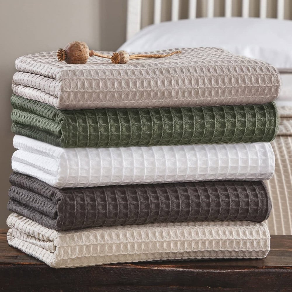 Incorporate additional texture to your sleep space with this tactile waffle throw bedspread, the ultimate in luxury. Its cool colours imparts a calming feel to any bedroom interior, whilst its versatile design makes the ideal foundation for any number of bedding design and is perfect for adding a modern look. The deep waffle weave ensures the blanket is very soft, retains warmth and provides just adequate insulation depending on body and atmospheric temperature making it ideal right throughout the year.