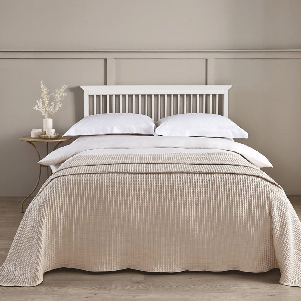 Incorporate additional texture to your sleep space with this tactile waffle throw bedspread, the ultimate in luxury. Its cool colours imparts a calming feel to any bedroom interior, whilst its versatile design makes the ideal foundation for any number of bedding design and is perfect for adding a modern look. The deep waffle weave ensures the blanket is very soft, retains warmth and provides just adequate insulation depending on body and atmospheric temperature making it ideal right throughout the year.