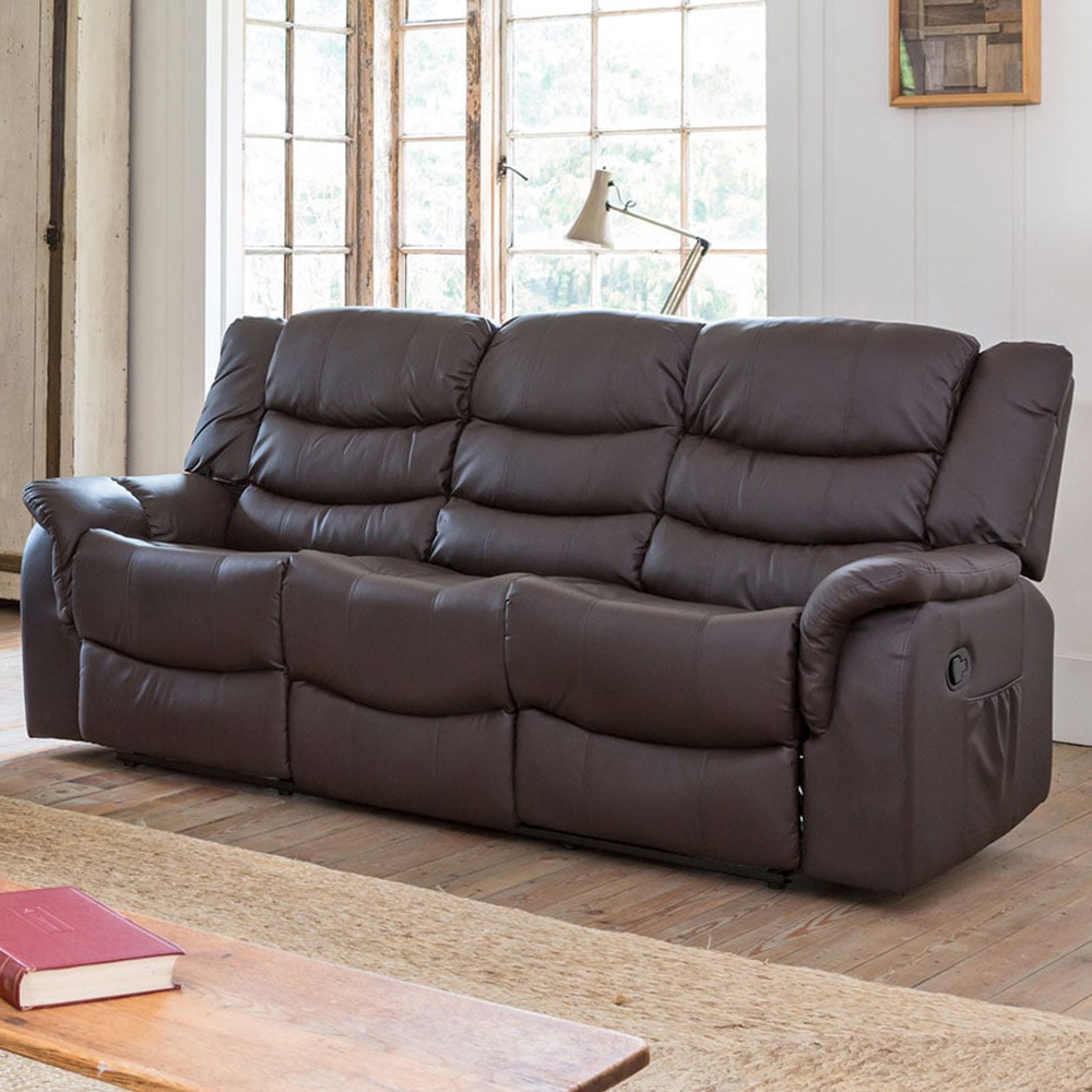 Almeira 3 Seater Brown Bonded Leather Recliner Sofa