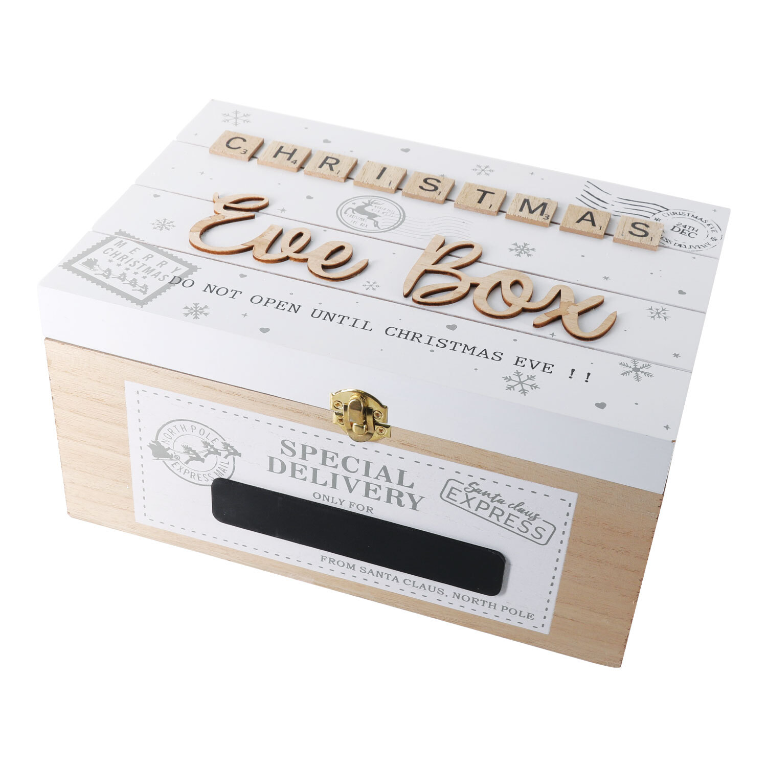 Make the night even more exciting by filling this White Wooden Tile Christmas Eve Box with pyjamas, hot chocolate, cosy socks, Xmas books and more. With 'Christmas' written in trendy, scrabble-like tiles and a sign reading 'special delivery only for' with space to write the name of your little one.