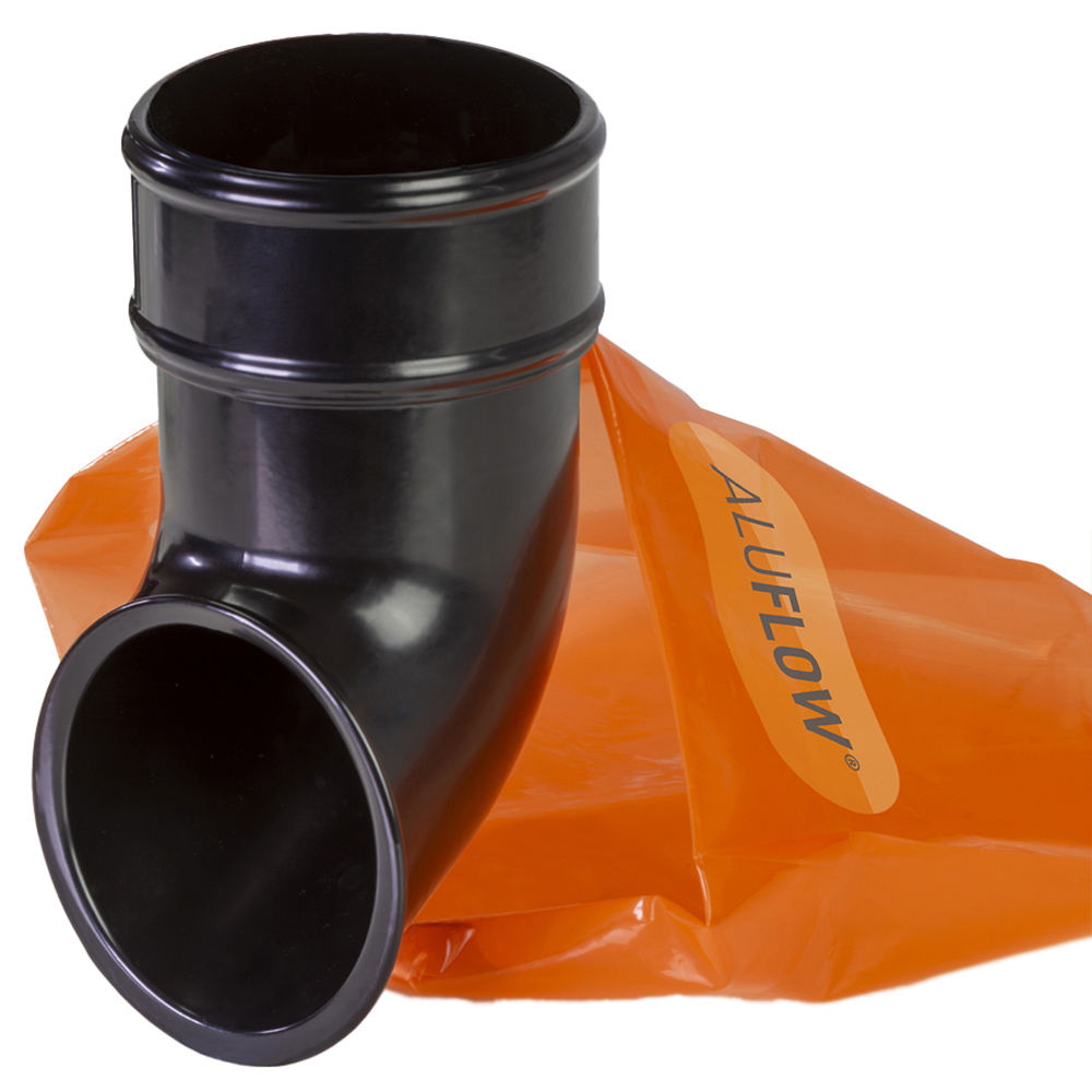 The Aluflow Black Downpipe Shoe serves as the perfect final touch to the impressive Aluflow guttering system. This component is made entirely of aluminium, just like the rest of the patented guttering range. Its purpose is to efficiently redirect rainwater away from your structure or wall foundation. Ensure that the open spout of the shoe faces outward, away from your building. Installing it is a breeze - simply slide it onto the end of the Aluflow aluminium downpipe. This downpipe shoe not only creates a tidy finish but also aids in effortlessly directing rainwater.